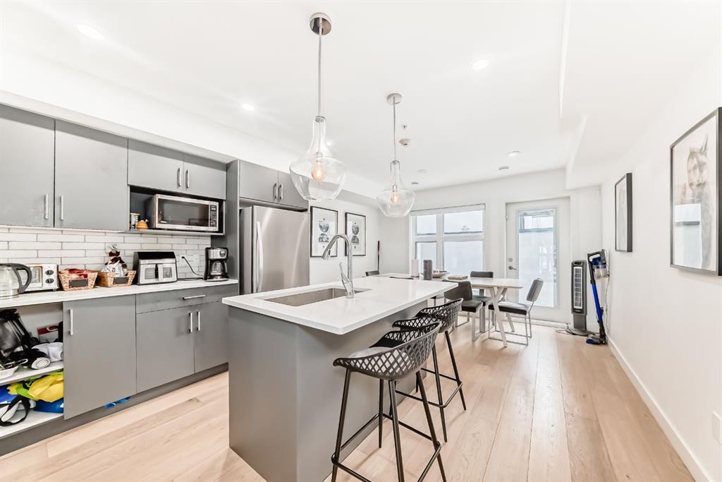 Welcome to this modern 3-storey townhouse in the vibrant inner-city community of Capitol Hill, Calgary. Featuring a blend of hardwood flooring, ceramic tiles, and plush carpet, this home boasts high ceilings on every level, creating a spacious and airy feel throughout. The main floor offers a cozy living room, an open concept kitchen ample cabinet space, upgraded stainless steel appliances, and elegant quartz countertops. Enjoy dining in the adjoining area and easy access to a private enclosed patio off the kitchen area. Ascending the stairs to the second floor, you’ll find a comfortable family room and the luxurious primary bedroom and a stunning 4-piece walk-in shower bathroom, fully tiled to the ceiling. The third floor features two generously sized bedrooms, even larger than the primary bedroom with ensuite 3-piece bathroom, and a laundry room for added convenience. This townhouse comes with a titled underground parking, with a private access door directly between the parkade and the basement of the unit, which also has ample space for storage. The property is beautifully landscaped, and offers a great curb appeal. Enjoy the convenience of nearby amenities, with numerous restaurants and shopping options within a 5-minute drive. Key locations such as Calgary City Centre (12 mins), Foothills Medical Centre (7min), and various schools including Capitol Hill School (1 min), Branston School (2min), and William Aberhart High School (3 min), University of Calgary(7 min) are all easily accessible. Public transit is a breeze with the nearest bus stop just a minute away and the LRT station only 4 minutes away. Enjoy outdoor activities at Banff Trail Park (2min) and the nearby West Confederation Park(3min) providing access to the Calgary Pathway System for walking, biking or running & Golf Course. Don’t miss out on this exceptional opportunity in the heart of Inner City Calgary! Book your showing today!!