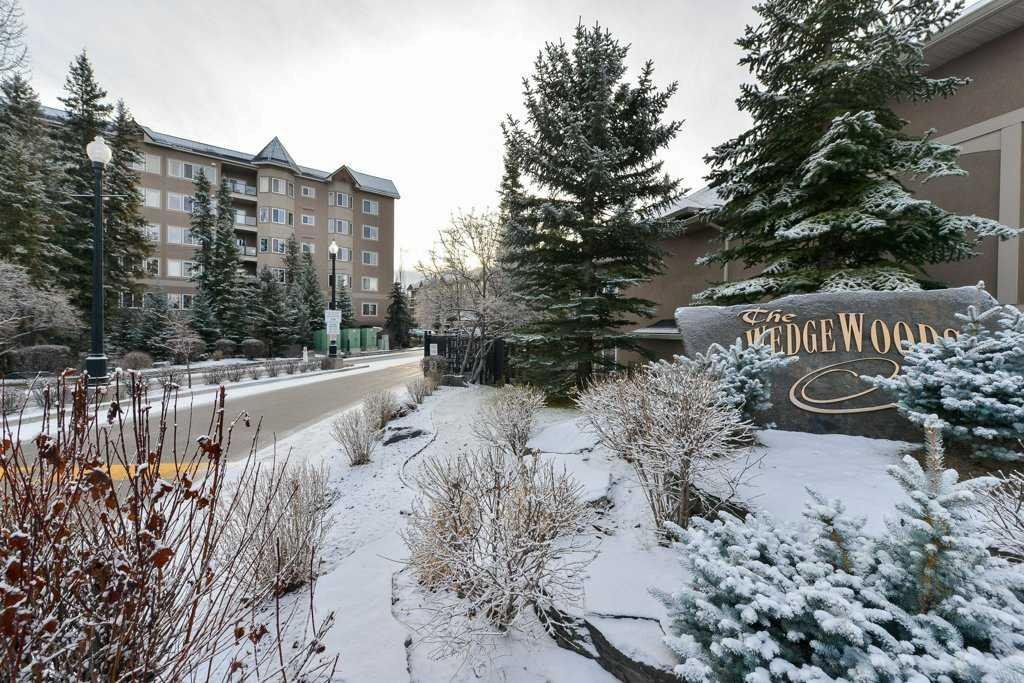 Welcome to The Wedgewoods, a well-managed complex in Discovery Ridge, backing directly onto Griffith Woods Park. This original-owner unit offers 1,028 sq. ft. of well-maintained living space with 2 bedrooms, 2 full bathrooms, in-suite laundry, titled underground parking with secure storage, and a private setting overlooking the park. The open plan is bright and functional, with flooring updated in the past two years. The kitchen has been updated with stone countertops, and all kitchen appliances have been replaced within the last three years. From the kitchen you overlook a spacious dining and living area featuring a stone gas fireplace. From the dining area, step out to a private balcony with gas hookup and uninterrupted views into Griffith Woods. The bedrooms are well separated for privacy; the second bedroom includes a built-in Murphy bed, allowing it to function as both a guest room and office. The primary suite overlooks the park and offers a walk-in closet and a full ensuite with soaker tub and separate shower. The titled underground parking stall includes secure storage directly in front. Amenities include a gym and community room in Building 30, and condo fees cover all utilities, including electricity. Living in Discovery Ridge leaves you 3 minutes from the Elbow River pathway system and offers a quiet, secluded setting with easy access to shopping, schools, and city transit. Mount Royal University and the Rockyview Hospital are less than 10 minutes away; you can be out of the city and on your way to Banff in minutes. The recently completed Calgary Ring Road gives you easy access to all quadrants of the city.
