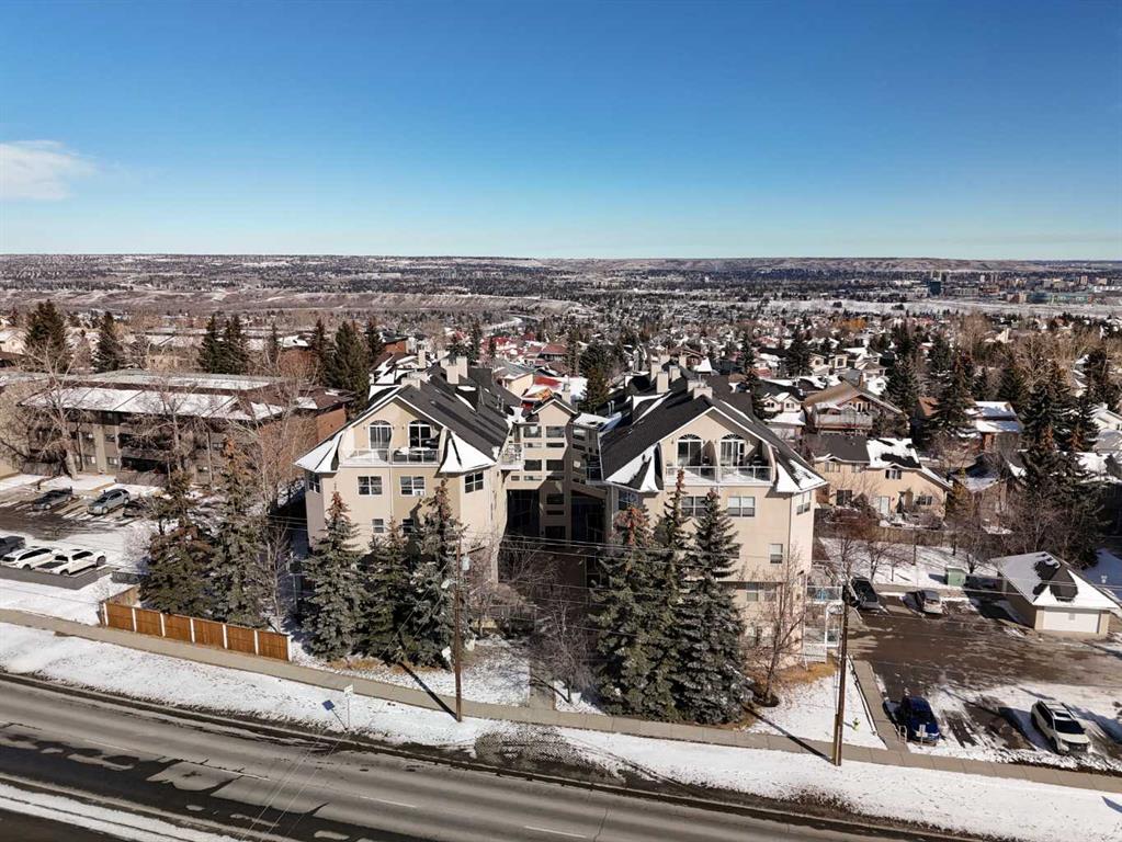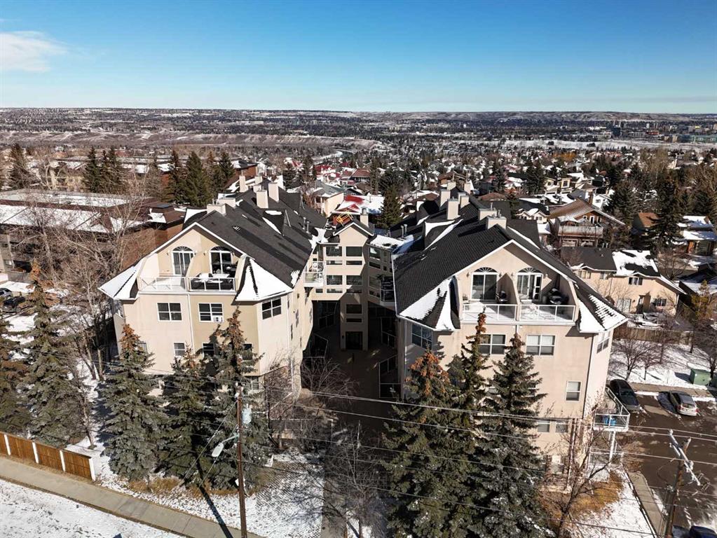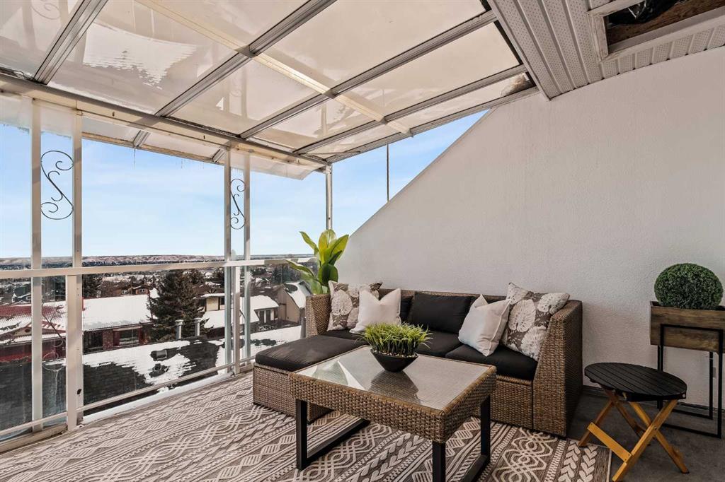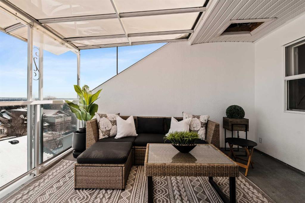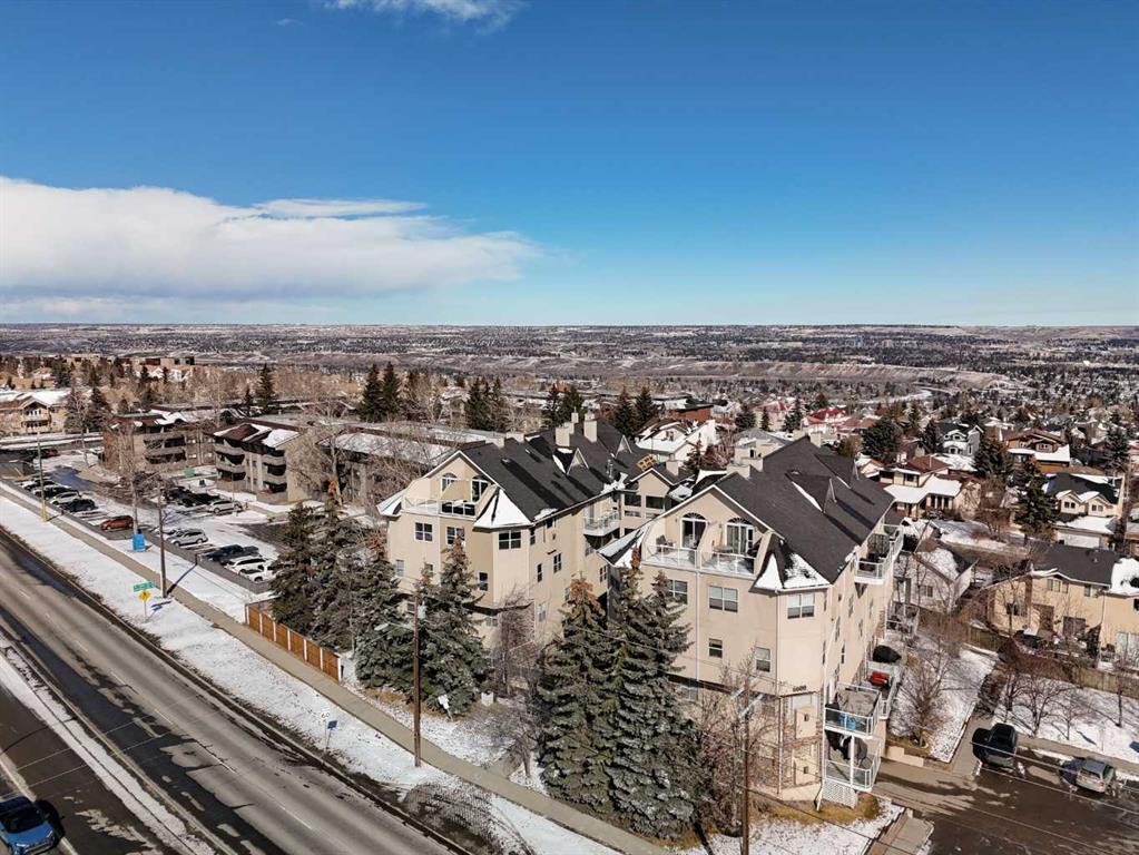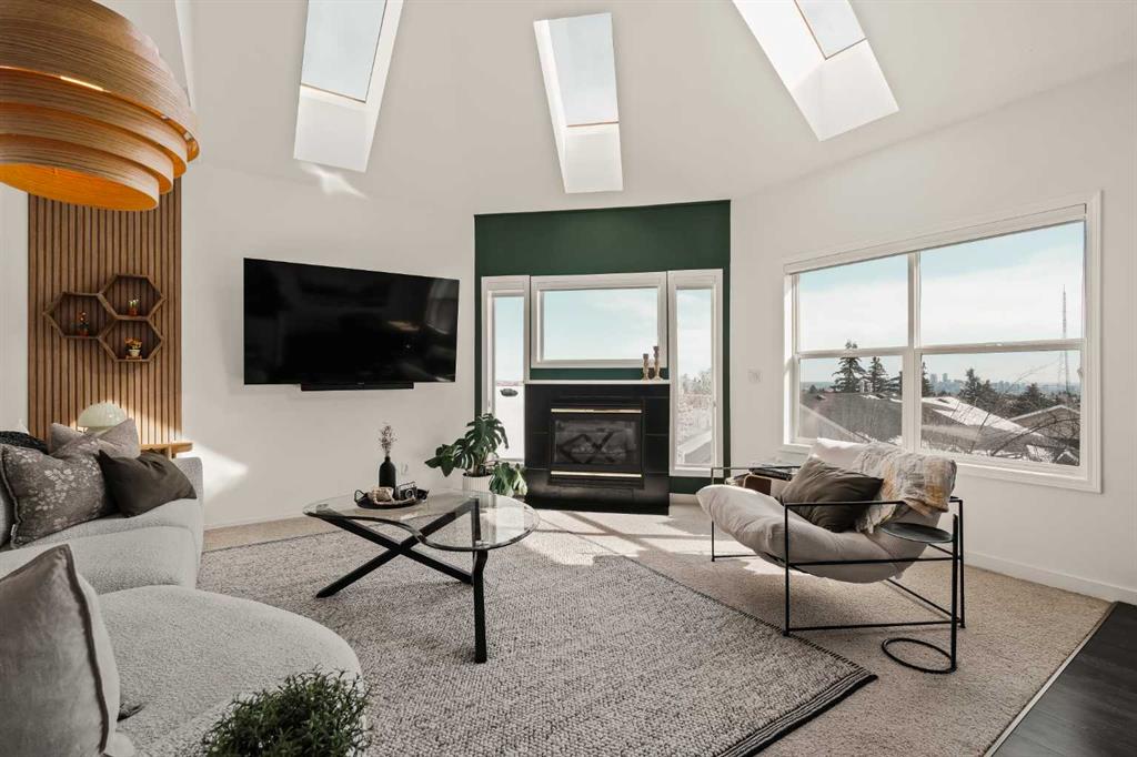 Step inside this Patterson Loft and you can immediately feel the difference. Vaulted ceilings and skylights pull natural light through the entire space, creating an elevated atmosphere that’s hard to replicate. The open concept layout flows effortlessly, anchored by a cozy gas fireplace that adds warmth and intention to the living space. The large dining room allows for a huge table, which makes hosting an easy option for the holidays or game nights. This end-unit penthouse delivers a rare combination of space, light, and uninterrupted city views that genuinely stop you mid-sentence. From sunrise to the evening skyline, this home frames Calgary like a living piece of art—whether you’re in the main living area or unwinding in the sunroom, the view is always the main event. With 2 bedrooms, 2 full bathrooms and in suite laundry there’s nothing this condo doesn’t offer! Then there’s the feature that really sets this home apart: A loft space overlooking the main floor—perfect as a home office, creative studio, guest zone, or elevated lounge. It adds that architectural edge and character that can be difficult to find. ?There are two separate entrances one on each level which is an extremely practical solution for moving furniture or hosting guests who can’t do stairs! Off of your loft is a large storage/utility room, and the enclosed sunroom extends your living space (professionally approved and the ONLY one in the building). Morning coffee, evening wine, or even watching fireworks over the city… it’s all better from here. Plus, you have a BBQ gas hookup, making it as functional as it is inviting. With 2 Titled underground parking spots, Visitor parking and the ability to rent a spot outside, it is easy to have guests. And location? Patterson is one of Calgary’s best-kept secrets—quiet, elevated, and just minutes to downtown via Old Banff Coach Road, giving you the perfect balance of convenience and escape.