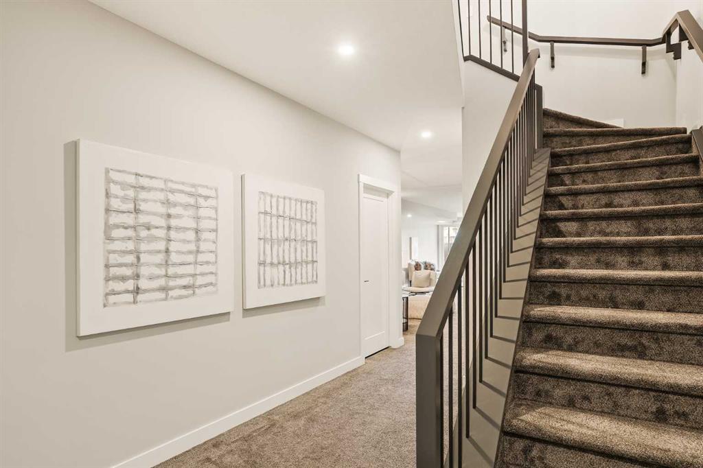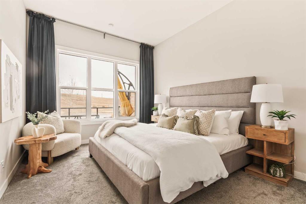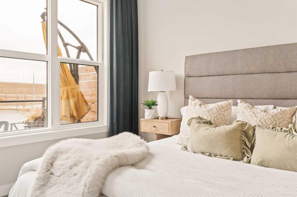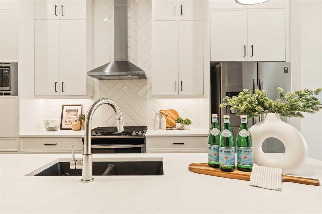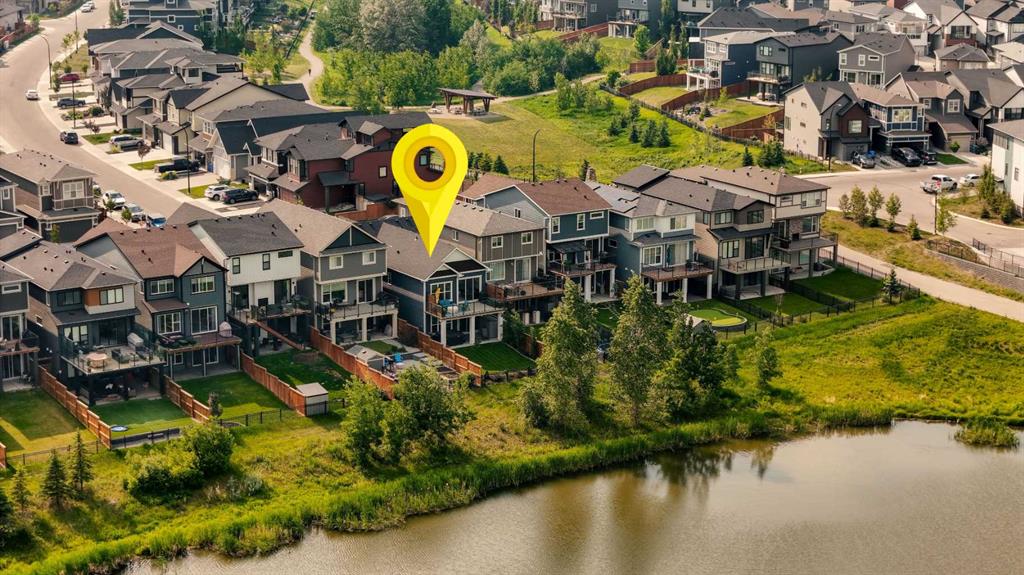 **OPEN HOUSE – SUNDAY, NOVEMBER 9th FROM 1:00-3:00** Welcome to this pristine, original-owner walkout bungalow perfectly positioned on a serene pond in the heart of Riverstone. Thoughtfully designed and impeccably maintained, this residence offers nearly 2,500 sq. ft. of beautifully developed living space – ideal for those seeking the comforts of bungalow living without compromise. Step inside to soaring 10’ ceilings, 8’ doors, and an abundance of natural light that floods the open-concept main floor. The timeless white kitchen serves as the heart of the home, featuring elegant quartz countertops, a designer herringbone backsplash, a soft grey accent island, and a full suite of premium stainless-steel appliances including a gas range, built-in microwave, and chimney hood fan. A walk-through pantry connects seamlessly to the mudroom, providing exceptional everyday functionality. The dining area comfortably accommodates large gatherings and opens to the inviting great room, where a wall of patio doors frames tranquil water views. The expansive upper balcony spans the width of the home making it the the perfect setting to enjoy morning coffee or evening sunsets over the pond. The primary suite is a true retreat, complete with pond views, dual vanities, a fully tiled walk-in shower, and a generous walk-in closet. A spacious den at the front of the home offers versatility as an office, reading room, or secondary bedroom. Completing the main level is a beautifully appointed powder room, built-in storage with floating shelves, and a full laundry room – allowing for single-level living at its finest. Descending the elegant maple and iron spindle staircase, you’ll find a bright and airy walkout level with 9’ ceilings and 8’ doors. The expansive recreation area offers ample room for a TV lounge, fitness space, and games area, while the second bedroom and full 4-piece bathroom create an ideal space for guests. Step outside to a fully covered lower patio – a peaceful and private outdoor living area perfect for lounging or adding a hot tub. The professionally landscaped 136’ deep lot strikes the perfect balance between beauty and low maintenance. Enjoy endless pond and greenspace views year-round without the upkeep of a large yard. A double attached garage, central air conditioning, and exceptional pride of ownership complete this rare offering. Detached bungalows in Riverstone are few and far between – and ones this immaculate, turnkey, and well-priced are nearly impossible to find. Don’t miss your opportunity to call this exceptional property home.