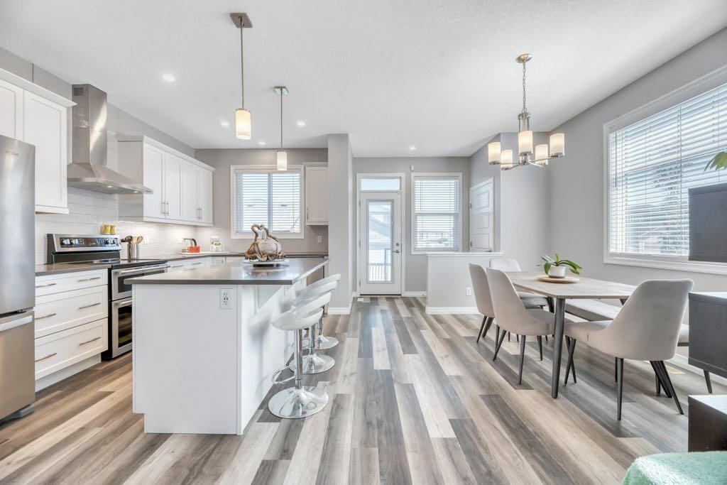 Amazing layout! Fall in love with your new home in the vibrant, family oriented community of Evanston. This unique side by side home offers modern stylish finishes and a super functional layout on a prime corner lot. Striking red siding, contemporary architecture, well maintained landscaping and the coolest weather resistant fence made from bamboo make this property stand out from the crowd. You’ll feel at home right away as you step into the bright and sunny living space with its soaring vaulted ceilings and spacious open concept layout with tons of windows. You’ll love the well planned kitchen with popular white cabinetry, gleaming stainless steel appliances, quartz counters and a centre island with seating for friends and family to gather. A cute little coffee or appliance station leads to your oversized pantry / storage room. The kitchen is also open to the dining area and a back door leads to your deck for easy access for grilling and outdoor dining. 2 more closets on this level provide ample storage for outer wear and other items. The second level of this home has one bedroom plus a full bath creating a perfect private space for a child or teen’s room, guest room or maybe a home office. The spacious owner’s retreat is on the top level. The 5 pc ensuite includes his and hers sinks, a good sized soaker tub and a separate shower plus there is a generous walk in closet. You’ll love the convenience of upstairs laundry and the vaulted open hallway takes advantage of the many windows on the main level creating a bright and open feel. You can expand your living space as needed in the clean, dry and unspoiled basement. Big windows give you the opportunity to add additional bedrooms if desired. The backyard has a nice deck and plenty of grassy area for kids and pets to play plus there is room to add a garage with back alley access. You are going to love living in Evanston. This modern suburban community offers an abundance of green spaces, great local schools and access to all urban amenities and major roadways. Don’t miss your chance to call this one home.