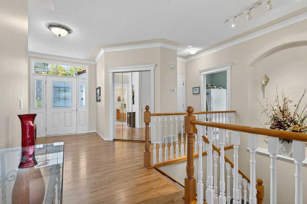Surrounded by breathtaking views of the 16th hole of the Hamptons golf course is this lovingly maintained bungalow here in exclusive Hamptons Heights just minutes to the clubhouse & neighbourhood shopping. Original owners of this mint condition estate home, which enjoys beautiful hardwood floors & central air, 3 bedrooms + den, 2 fireplaces & 2 fantastic decks to take in the glorious wide views. Complemented by expansive 9ft ceilings & picture windows, you’ll love the inviting & airy feel of the main floor with its stunning living room with 11ft stepped ceilings & 3-sided fireplace, elegant open concept formal dining room & sun-drenched maple kitchen with skylights & quartz countertops, dining nook with access onto the L-shaped balcony, walk-in pantry & white/stainless steel appliances. The relaxing owners’ retreat has a big bay window with views of the golf course, great-sized walk-in closet & jetted tub ensuite with double vanities, separate shower & built-in shelving. The beautifully finished walkout level – with infloor heating, is finished with 2 large bedrooms & another full bathroom, loads of extra space for storage & fantastic games/rec room with wet bar, stone-facing fireplace & built-in cabinets. Main floor also has a dedicated home office with built-in bookcases & laundry room complete with Maytag washer & dryer, sink & built-in cabinets. For your outdoor entertaining & relaxation, you’ve got a huge partially covered balcony (almost 300sqft) with natural gas line for your BBQ plus a covered 300sqft covered patio in the backyard, which is fully fenced & landscaped with winding gardens, mature shrubs & trees. Additional features include crown moldings, finished garage, red brick façade & clay tile roof, Hunter Douglas blinds, 2 hot water tanks, central vacuum system & storage shed in the backyard to store your gardening tools. Not-to-miss opportunity to make your home in one of the Hamptons most desirable locations, only a few short minutes to all community amenities (Hamptons School, tennis courts & sports fields), shopping at the Hamptons Co-op & Edgemont Superstore, plus quick & easy access to Crowfoot Centre & LRT, University of Calgary, major retail centers & downtown.