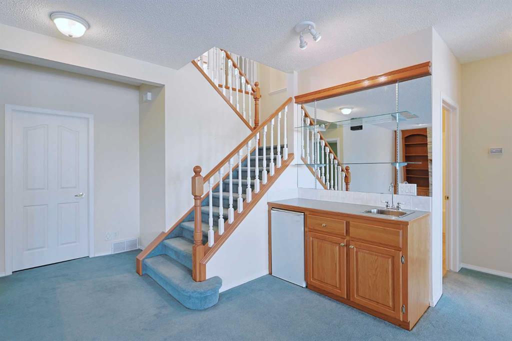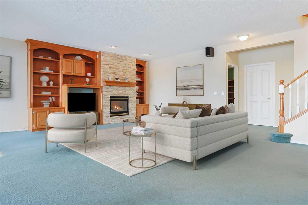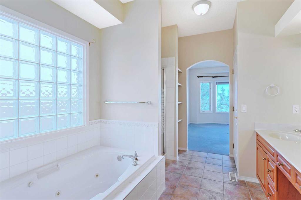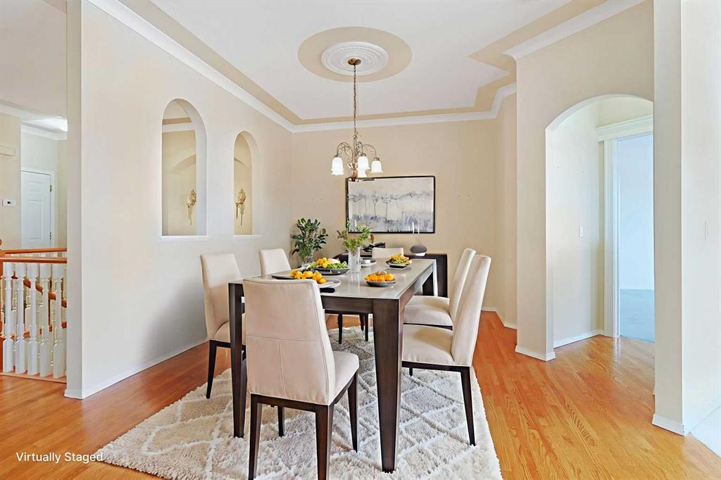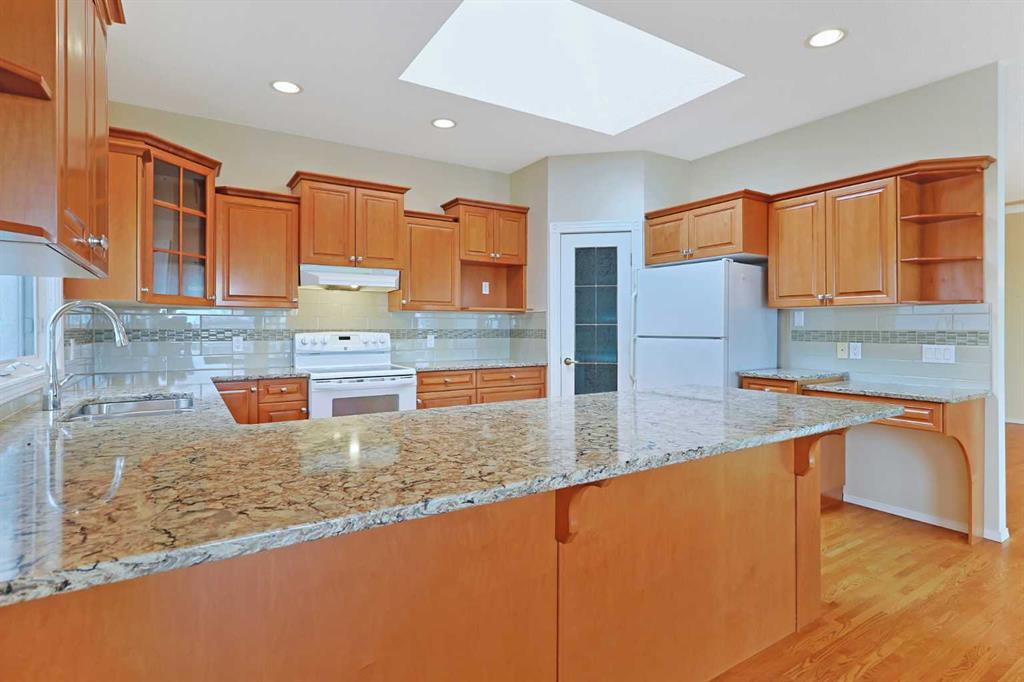 Lovingly maintained by the original owners, this wonderful home is ready & waiting for a new family to make it their very own, located here on exclusive Hamptons Heights backing onto the prestigious Hamptons golf course. Surrounded by breathtaking views of the 16th hole & distant horizon, this mint condition walkout bungalow enjoys beautiful hardwood floors & central air, 3 bedrooms + den, 2 toasty gas fireplaces & 2 fantastic decks to take in the glorious wide open views. Complemented by 9ft ceilings & expansive picture windows, you will just love the inviting & airy feel of the main floor with its stunning living room with 11ft stepped ceilings & 3-sided fireplace, elegant open concept formal dining room & sun-drenched maple kitchen with skylights & quartz counters, walk-in pantry & white/stainless steel appliances. A French door from the dining nook leads out onto the L-shaped balcony…with a covered section & almost 300sqft of outdoor space. The relaxing owners’ retreat has a big bay window with views of the golf course, great-sized walk-in closet & jetted tub ensuite with double vanities & separate shower. The beautifully finished walkout level – with infloor heating, has 2 large bedrooms (1 with a big walk-in closet), another full bathroom, loads of extra space for storage & fantastic games/rec room with wet bar, stone-facing fireplace & built-in cabinets. The main floor also has a dedicated home office with desk (included) & built-in bookcases, & laundry room complete with Maytag washer & dryer, sink & built-in cabinets. In addition to the balcony, you’ve also got a 300+sqft patio in the backyard, which is fully fenced & landscaped, & comes complete with winding gardens, mature shrubs & trees. Other features include crown moldings, finished garage, red brick façade & clay tile roof, Hunter Douglas blinds, 2 hot water tanks, central vacuum system & storage shed in the backyard for your gardening tools. Not-to-miss opportunity to make your home on one of the Hamptons most desirable streets, only a few short minutes to all community amenities (Hamptons School, tennis courts & sports fields), shopping at the Hamptons Co-op & Edgemont Superstore, plus quick & easy access to Crowfoot Centre & LRT, University of Calgary, hospitals, major retail centers & downtown.