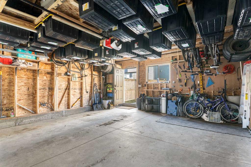 The east-facing backyard is a private retreat, thoughtfully set up for both relaxing and entertaining. Enjoy the 12’ x 22’ floating deck tucked behind a privacy wall and covered by a retractable pergola, complete with a gas line for your BBQ or a patio heater. The rest of the yard is fully fenced, landscaped with soft, low-maintenance grass, and a wide pathway leading to the oversized 20’ x 22’ detached garage. The garage has been customized with impressive storage solutions including rafters, pegboard, shelving, overhead I-beams with extensive bin storage, and tire racks.