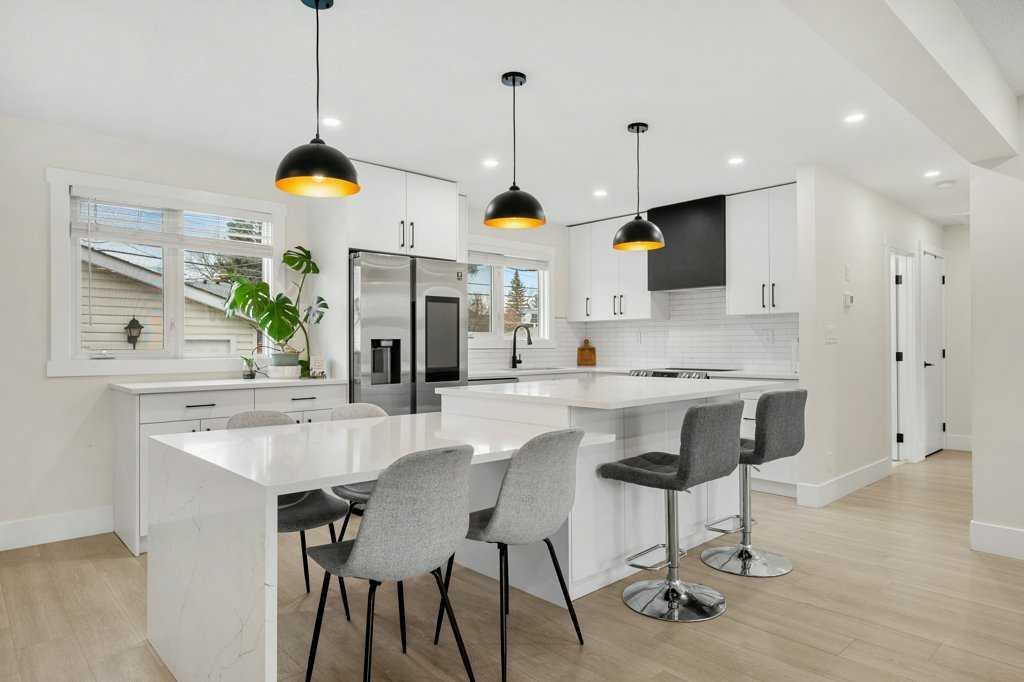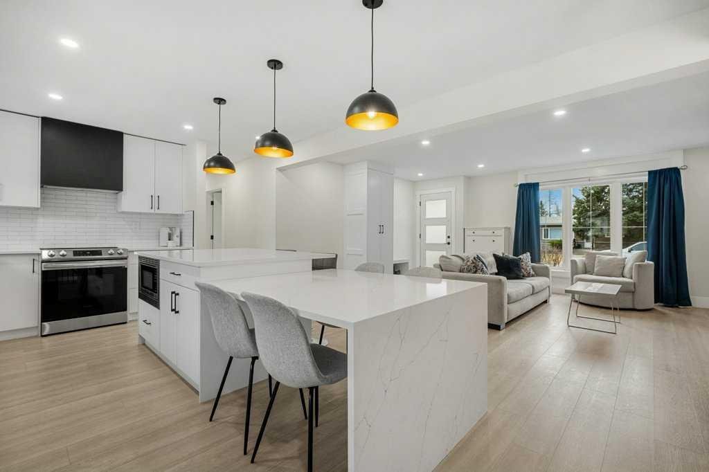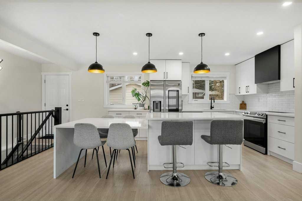 –> OPEN HOUSE: Sat, Nov 8 from 1:00 to 4:00pm <– Magnificent, Marvelous + Modern. A fully renovated bungalow on a quiet street steps from two schools and the community association. This 4 bedroom + 3 bathroom move-in ready home shines with light wood flooring, large windows and a 60 inch fireplace plus feature wall. Open concept living exists here with amalgamating entertaining areas ideal for visiting family and guests. Your clean + stylish kitchen awaits: quartz counters, stainless steel appliances, tile backsplash white cabinetry and a built-in dining niche. Retreat to the primary bedroom equipped with custom walk-through closet along with dual sinks + massive shower in the ensuite bathroom. This second bedroom and adjacent full bathroom round out the main level. Down the stairs you will find a spacious rec room, built-in TV nook plus dark + moody wetbar. What a great area for family movie nights or play space for the kids! Two more generous sized bedrooms occupy the corners along with another bathroom. Don't miss the office alcove, laundry room and a spot for seasonal storage. All renovations + mechanical replacements completed in 2022 so still many years of life left! Out the back door you will find a large paved patio leading to the double detached garage along with a grassy area for the dog, firepit or trampoline. A location close to all of your daily amenities and quick access to Elbow Drive, Anderson Drive, Macleod Trail + C-Train line.