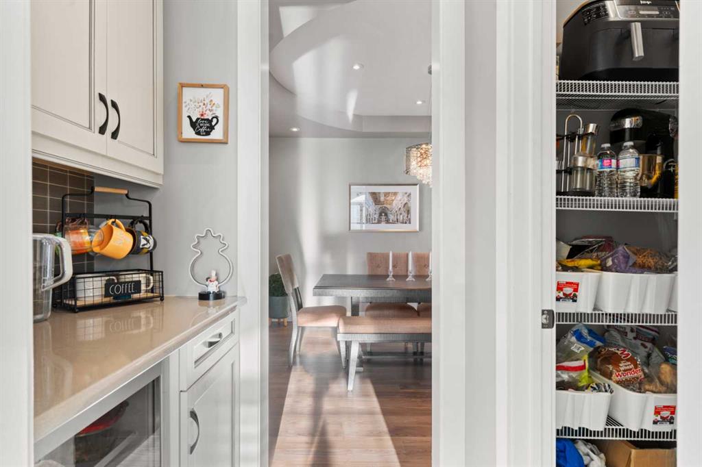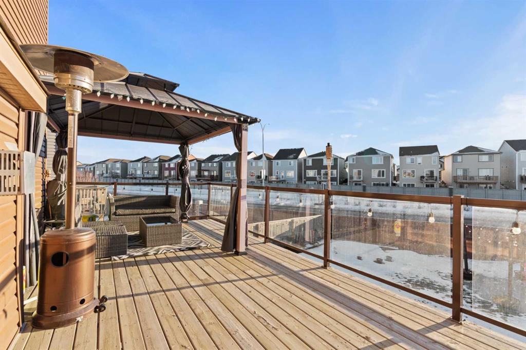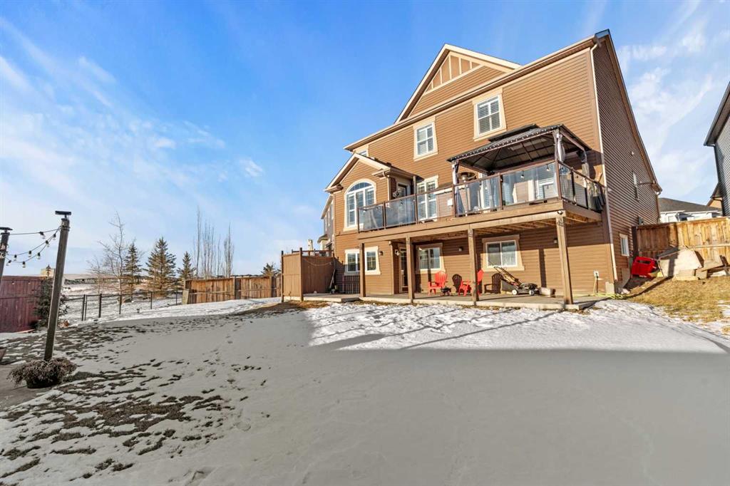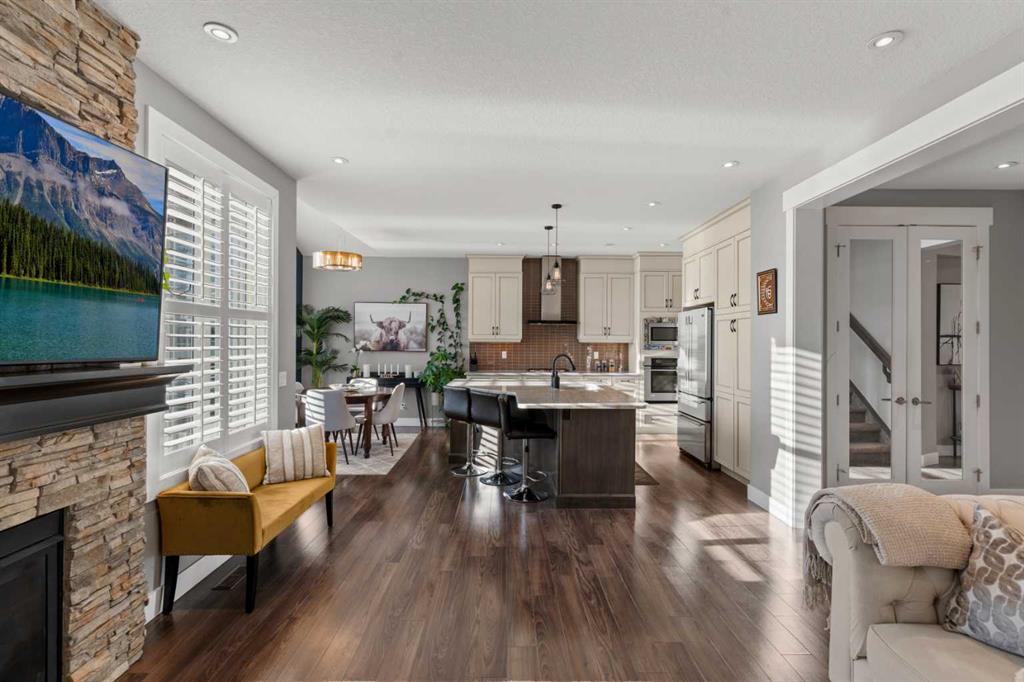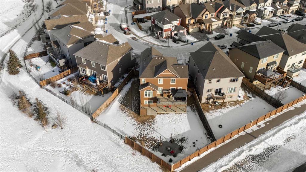 Welcome to your dream home, perfectly situated on a massive pie-shaped lot backing onto green space and a scenic pond with breathtaking sunset views. This exceptional two-storey home with a walk-out basement offers over 3,800 sq. ft. of fully developed living space and is filled with high-end upgrades throughout. The main level showcases vaulted ceilings, expansive windows with Hunter Douglas shutters, engineered laminate flooring, knockdown ceilings, upgraded lighting, and elegant spindle-railed staircases. A private den provides the ideal home office, while the impressive formal dining room easily accommodates large gatherings and is highlighted by a striking chandelier. The open-concept kitchen is a chef’s dream, featuring a massive quartz island, built-in stainless steel appliances, pendant lighting, a coffee bar, spacious pantry, and a casual dining area. The inviting living room is anchored by a floor-to-ceiling stone gas fireplace, creating a warm and stylish focal point. Step outside to the oversized deck and enjoy peaceful views of the pond and green space, perfect for relaxing evenings and entertaining. Upstairs, you’ll find a generous bonus room, three spacious bedrooms, and two full bathrooms. The expansive primary retreat includes a walk-in closet and a luxurious ensuite with double vanities, a fully tiled soaker tub, and a glass-enclosed shower. The fully developed walk-out basement is ideal for both entertaining and everyday living, featuring a large recreation area with wet bar, perfect for movie nights, a built-in pet wash station, space for a home gym, an additional bedroom, and a full bathroom. Walk out to the backyard and enjoy cozy nights by the fire while overlooking the tranquil green space and pond. Located close to parks, walking paths, a skate park, and pickleball courts, this home offers the perfect blend of luxury, lifestyle, and location. Book your private showing today—this rare opportunity won’t last long!