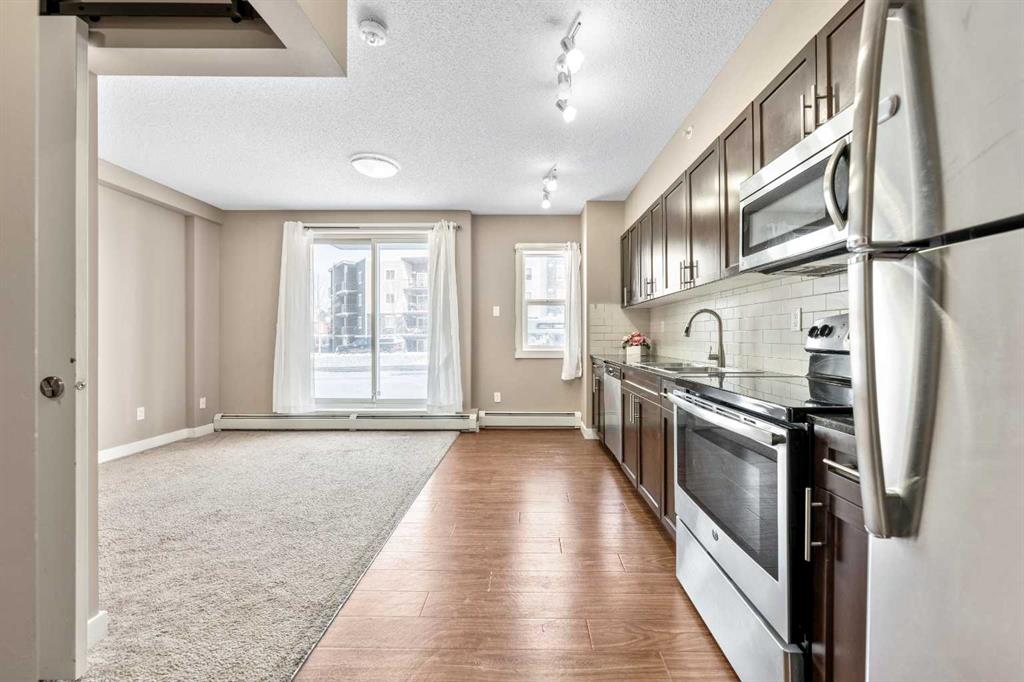Welcome to this beautifully maintained ground-floor two-bedroom condo in the desirable community of Kincora! This bright, open-concept unit showcases granite countertops, stainless steel appliances, durable laminate flooring, and plush carpet for added comfort. Large sliding glass doors off the living area fill the space with natural light and open to a private patio—perfect for summer BBQs and entertaining guests. The spacious primary bedroom features a stylish corner barn door, adding a unique touch of character. A generous second bedroom, full bathroom with a tiled shower, and convenient in-suite laundry complete the thoughtfully designed layout. This well-managed building offers the added value of a titled underground parking stall and a titled storage locker. Ideally located with quick access to Stoney Trail and just minutes from shopping centres, parks, schools, and public transit, Kincora offers both comfort and convenience. Don’t miss this fantastic opportunity to own in a sought-after community!