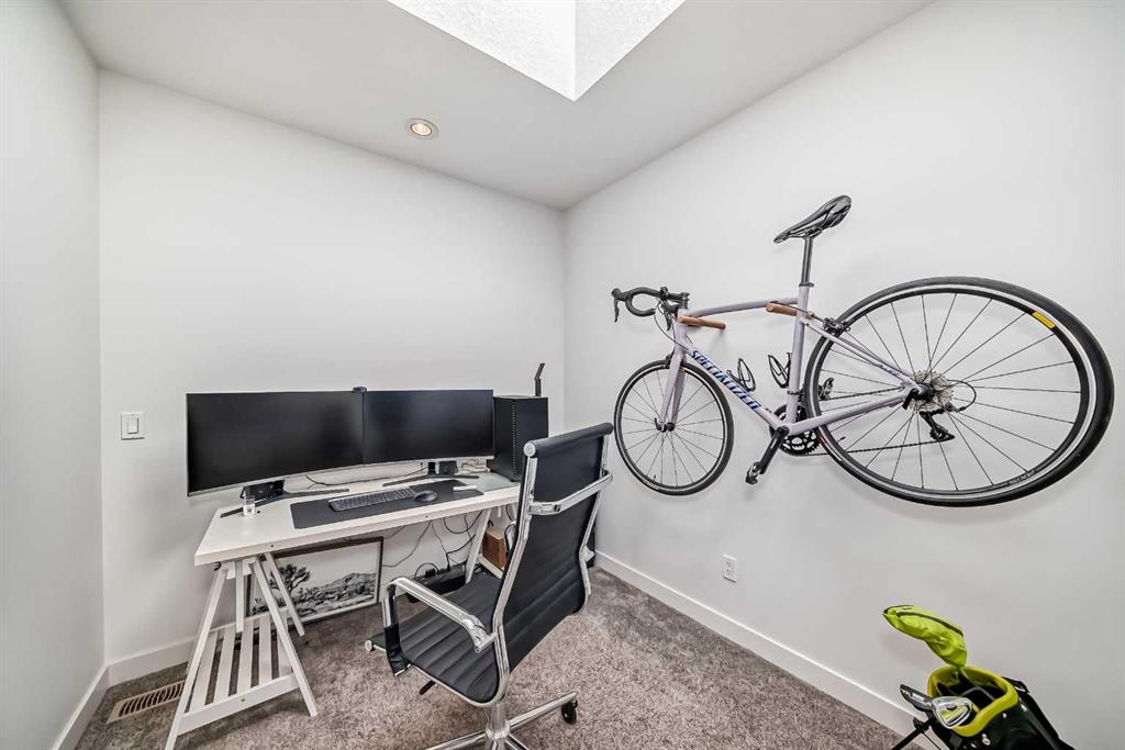 Welcome to The Rosscarrock Retreat, where high-end urban living meets architectural brilliance. Located at 109, 15 Rosscarrock Gate SW, this stunning 2-bedroom, 3-bathroom townhome offers a rare four-level floor plan designed for the modern professional. From the moment you arrive at your private street-level entrance, the quality is evident—custom built-in storage keeps your transition seamless, while a convenient powder room serves the main floor. Just steps below, you’ll find the ultimate city luxury: secure, underground heated parking and additional storage space. The heart of the home is a culinary masterpiece. The second level features a gourmet, European-style kitchen finished with sleek white soft-close cabinetry, premium quartz countertops, and a designer stainless steel appliance package. The center island serves as the perfect social hub for entertaining, with easy access to a truly unique feature—a private patio with heated concrete, ensuring year-round outdoor comfort. Moving up, the third level provides a dedicated sanctuary for relaxation, anchored by a cozy electric fireplace and a secondary private balcony for fresh-air breaks. The top floor is dedicated to rest and productivity. The deluxe primary suite is a true “executive” escape, boasting a spa-like 4-piece ensuite with dual sinks, an oversized walk-in shower, and a large walk-in closet with custom organizers. A second spacious bedroom and a bright, skylit flex space—ideal for a home office—complete the upper level along with enclosed laundry. Perfectly positioned near Bow Trail, the LRT, and the lush pathways of Edworthy Park and Shaganappi Golf Course, this home offers an uncompromised lifestyle in one of Calgary’s most vibrant inner-city communities. Book your viewing today!