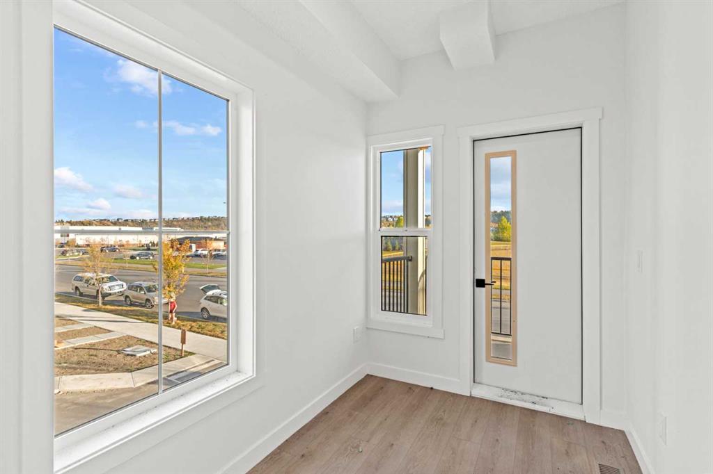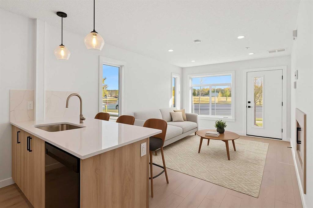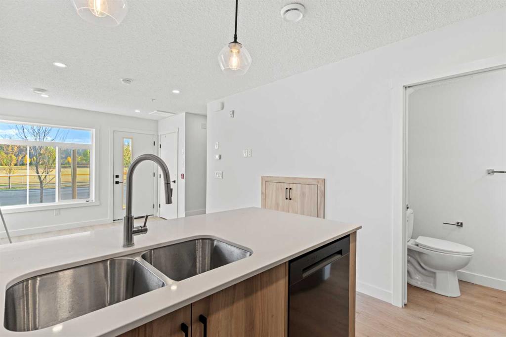 Welcome to a home where contemporary elegance meets every day comfort, coupled with an opportunity for outdoor lifestyle living. This one a kind community is your chance to experience waterfront living with quick access to the Rocky Mountains. Stepping into the unit, you will find an open concept floorplan with 9′ ceilings throughout all of the living areas, luxury wide plank flooring. Moving into the well designed kitchen, you will find quartz stone countertops with soft close drawers, upgraded stainless steel appliances, as well as an overhanging kitchen island for extra counter space. Continuing further into the unit, you will find 3 bedrooms and 2 bathrooms with contemporary plumbing fixtures, stoned tiled flooring, and quartz countertops. You will also have a titled parking stall. Sit back and relax with your sun filled waterfront views on your private deck and enjoy your evenings walking through the garden pathways and parks nearby. Being in prime location, the Greystone community will be surrounded by various large retailers including one of Canada’s flagship Co-op grocery store locations – future of live, work, play in Western Canada’s #1 fastest-growing region. Walking distance to Ocgrow’s Greystone Place Commercial retail centre – with all of your favourite restaurants, coffee shops and amenities nearby. The Spray Lakes Sports Centre is just minutes away, pickle ball courts across the street, and the accessibility to the Rocky Mountains provides you with a great opportunity for your outdoor adventures. Don’t miss out on your chance to be a part of Cochrane’s fast paced growth in beautiful community of Greystone.