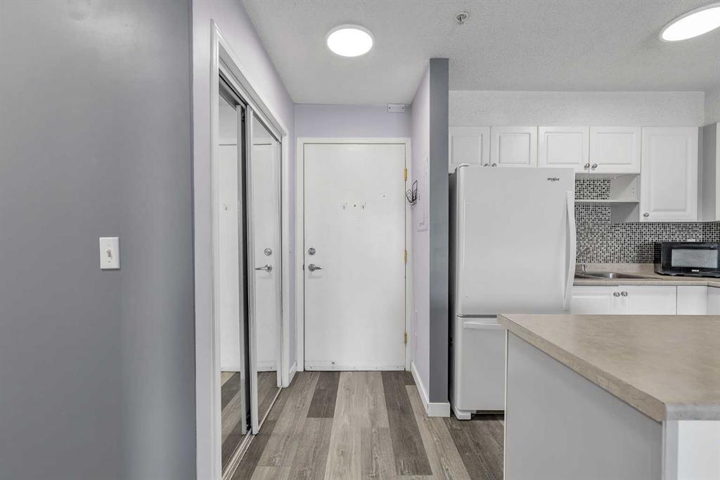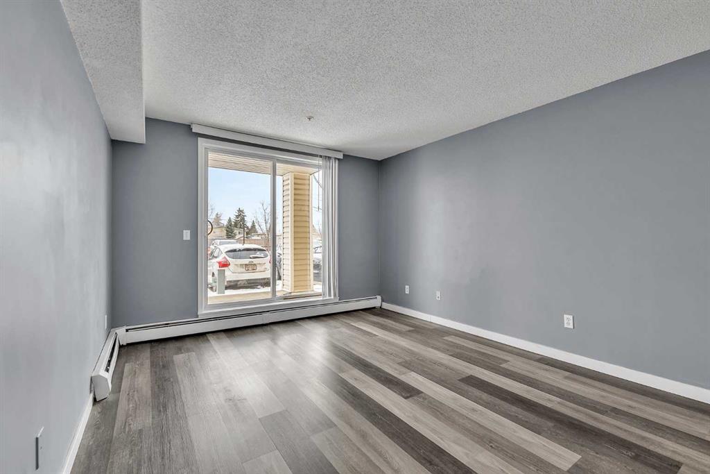 Welcome to Elliston Park, an ideally located complex directly across from the park it’s named after, home to the renowned GlobalFest fireworks festival. Imagine enjoying spectacular summer fireworks right from your doorstep. This well-appointed unit offers over 600 sq. ft. of thoughtfully designed living space, featuring 1 bedroom, 1 den, 1 full bathroom, and a titled underground parking stall. Inside, you’ll find stylish laminate flooring throughout and a bright, open-concept layout that maximizes both space and comfort. The spacious living room is filled with natural light and features sliding glass doors that open onto a private patio, perfect for summer barbecues and relaxing outdoors. The kitchen is both functional and inviting, complete with white cabinetry and clean, well-maintained appliances. The generously sized primary bedroom includes double closets, while a full 4-piece bathroom and in-suite laundry add everyday convenience. Perfectly situated, this home is close to schools, playgrounds, shopping, and public transit, making it an excellent choice for families, first-time buyers, or investors alike. Don’t miss this fantastic opportunity – book your private showing today!