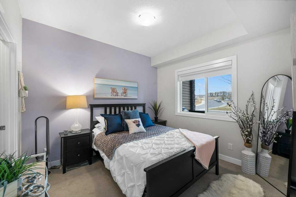 Welcome to your new home in beautiful Sage Hill! This stylish one-bedroom plus den condo offers the perfect blend of comfort, functionality, and location. Step inside to an inviting open-concept layout featuring bright natural light, luxury vinyl plank flooring, and modern finishes throughout. The kitchen showcases sleek cabinetry, full tile backsplash, stainless steel appliances, and ample counter space — ideal for cooking or entertaining. The spacious den provides the flexibility for a home office, fitness nook, or reading space, while the primary bedroom comfortably fits a queen-sized bed and includes generous closet space. You’ll also appreciate the convenience of in-suite laundry and upgraded lighting. Enjoy your own private front entrance with easy access for guests and plenty of street parking in addition to your assigned stall. Situated steps away from scenic walking paths, parks, playgrounds, and natural ravines — plus only minutes to major shopping, restaurants, and transit. Everything you need is right here in this vibrant, amenity-rich community. Whether you’re a first-time buyer, downsizer, or investor, this is one you’ll want to see!
