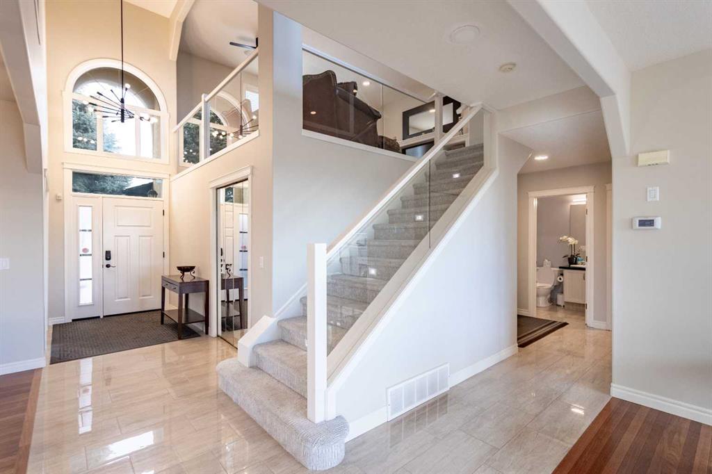 Nestled in a quiet cul-de-sac in the desirable community of Signal Hill, this impressive home welcomes you with a grand entrance featuring soaring 19-foot ceilings. Enjoy stunning mountain views and a bright, open layout designed for both comfort and entertaining. The main floor offers a spacious kitchen overlooking the family room with a cozy fireplace, perfect for everyday living, along with a separate formal dining room. The south-facing backyard provides abundant natural light and beautiful mountain views. Upstairs, you’ll find four generously sized bedrooms plus a bonus room, ideal for a home office, playroom, or media space. The fully developed walk-out basement features a large family room with fireplace, an additional bedroom, and a 4-piece bathroom—perfect for guests or extended family. Located close to Westhills Shopping Centre, schools, parks, and amenities, this home combines quiet living with exceptional convenience.