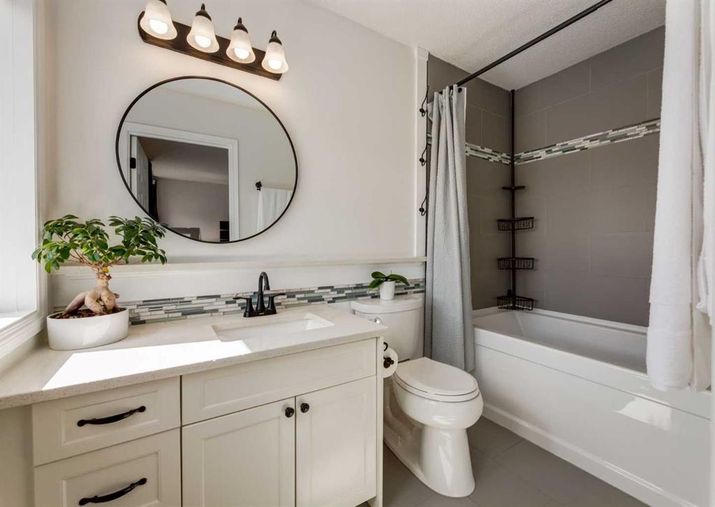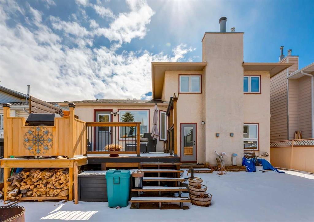 This home truly sets itself apart. Significantly upgraded, remodeled, and filled with wonderful tasteful details. Located on a Cul de sac nestled in the heart of family friendly Sundance, with lake privileges, 6 schools & quick access to Stoney Tr. It is the perfect family home! All Poly B Plumbing has been removed, enjoy new central air, a newer high efficiency furnace with UV filter, triple pane windows, a stucco exterior, newer fence, cedar deck with gas BBQ line, a low maintenance professionally landscaped front yard. The overhead garage door is insulated, the garage is insulated & drywalled, and the front driveway is extra long to welcome friends and family. Inside is a great floor plan with refinishable hardwood floors through out the main level, fresh paint & updated lighting. The front living room is flooded with natural light accentuated by the vaulted ceiling and is open to the generous dining space. The fully renovated kitchen is chic, functional and modern with loads of cabinets, pots & pan drawers, a center island with seating, quarts counter tops, and glass back splash all adorned by tasteful custom built in artisan cabinetry bringing character to an already great space. Cozy up to the fireplace as you step down to the large family room with space for the whole family. The Stately barn door slides to reveal a convenient main floor laundry room with awesome build in storage that discreetly leads to a 2 pc powder room. The interior garage entry with separate coat closet and access to the basement resides here too. Upstairs is a generous primary bedroom with a full wall closet complete with closet organizer and lovely renovated 4 pc Ensuite. Two additional bedrooms, a custom created linen closet adding a touch of flair and a 4 pc main bath complete this level. The finished basement is home to a large Rec/Great Room, a flex room currently built into a play area with the cutest playhouse! Carrying on, is a 4th bedroom and a large storage/utility area. The back yard has 2 rear entry doors, one off the kitchen opening to the raised, private deck, perfect for barbequing & the 2nd is off the Family room with stone steps down to the lush lawn. Sundance is more than a lake community it is a family friendly, convenient lifestyle boarding onto Fish Creek Park, surrounded by shopping, services, amenities and more. Come experience the Sundance Lifestyle.