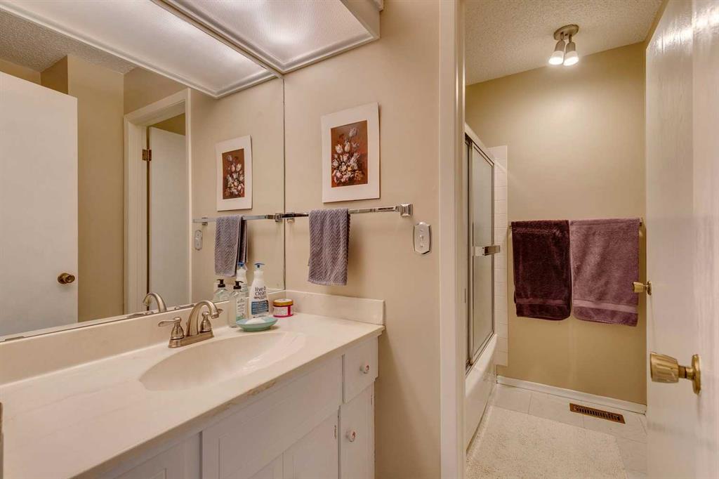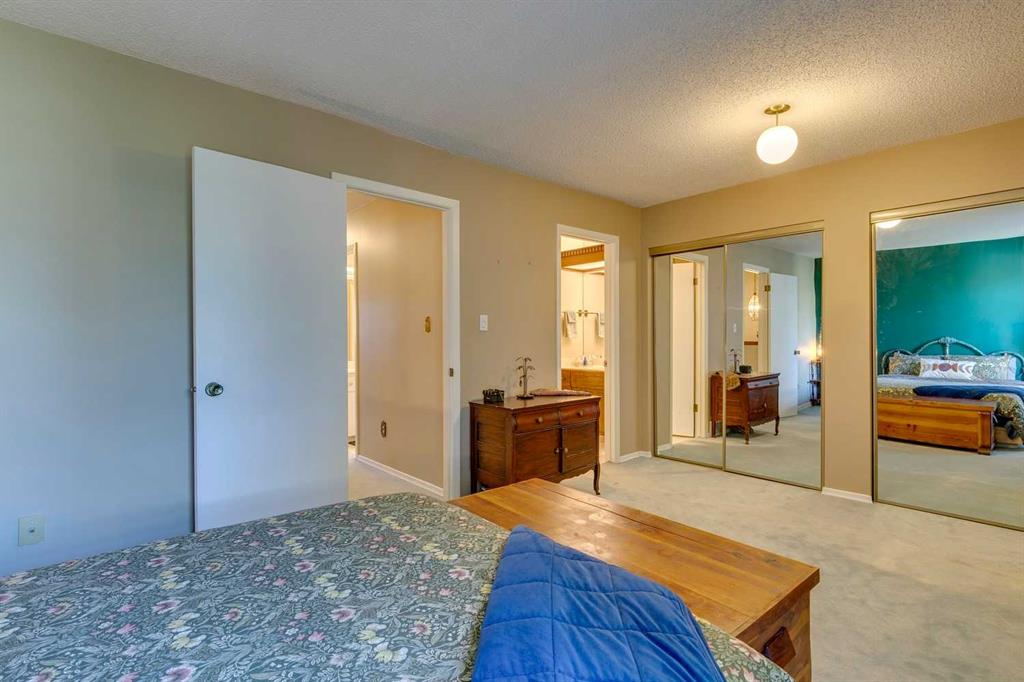 This charming townhouse is tucked away in a beautifully maintained complex surrounded by mature trees. The home is mostly original, and full of character and warmth. You’ll love the first impression with its vaulted wood beam ceilings, cozy wood-burning fireplace, and sliding patio doors that open to a private fenced yard backing onto a small green space. The layout offers a comfortable mix of spaces, with a formal dining area just a few steps up from the living room, and a bright kitchen with a breakfast nook. There are three generous bedrooms upstairs, and the primary bedroom is impressively large with a 2-piece ensuite and a cheater door to the main 4-piece bathroom. A second 2-piece powder room is conveniently located off the kitchen level. The basement provides great potential for storage or future development. Additional features include a heated single attached garage with new garage door, R40 newly insulated attic, driveway parking for a second car, and a new furnace installed last year. The location is quiet yet convenient, close to groceries, restaurants, and other amenities, with easy access to Stoney Trail. A wonderful opportunity to own in this lovely established community.