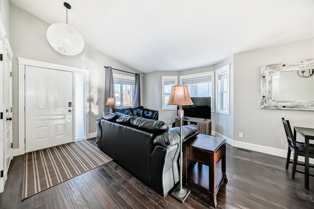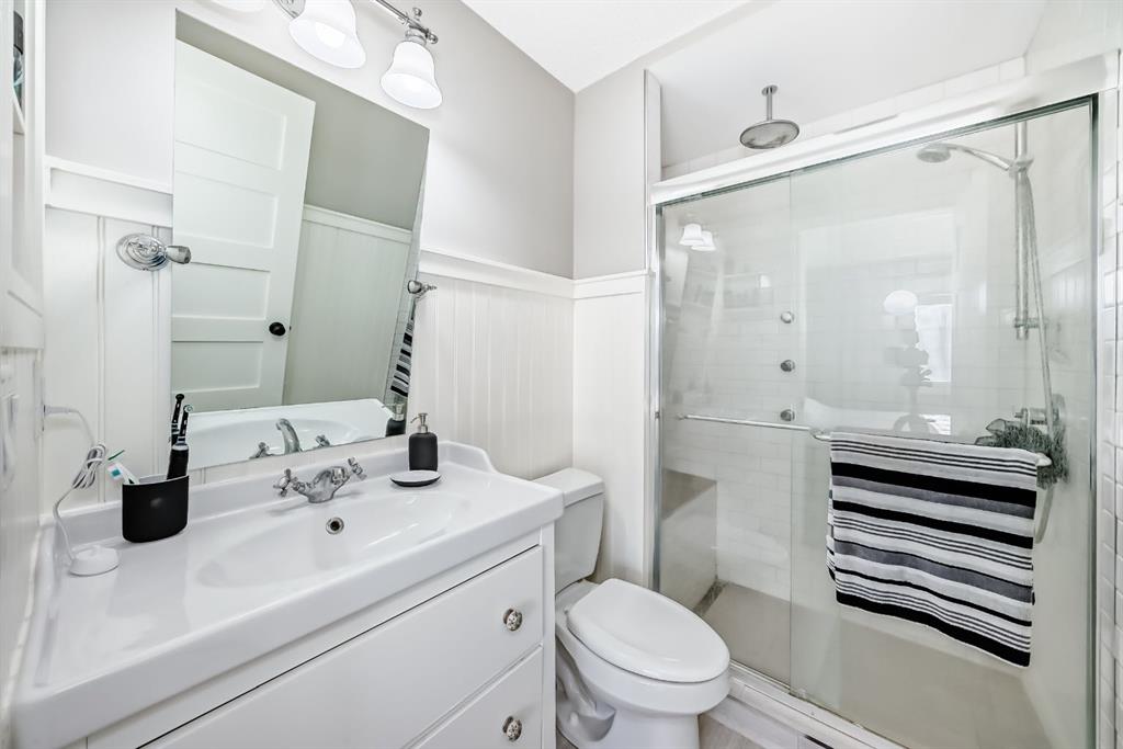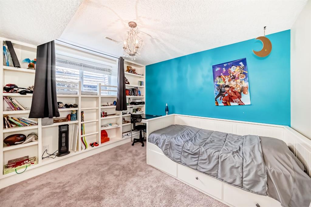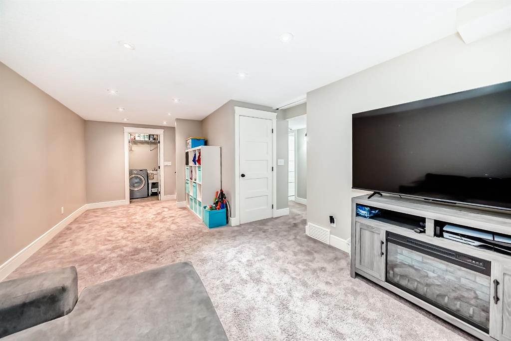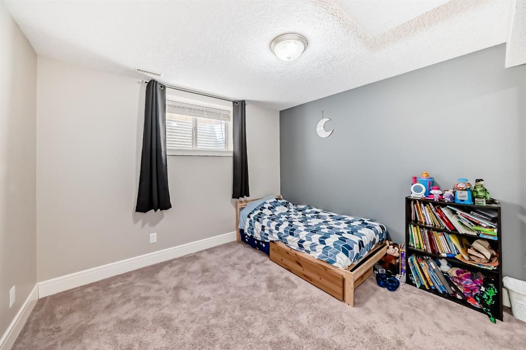 The fully finished basement provides a cozy retreat, ideal for movie nights or family gatherings. It features a welcoming family room, two large bedrooms (each with built-in storage and big south- and west-facing windows for ample natural light), a 4-piece bathroom with heated floors, and a practical laundry room with a sink—making it perfect for growing families or first-time buyers.