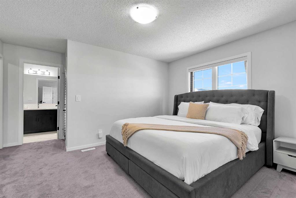 Located in the family-centric community of Carrington, this nearly new and impeccably maintained 3 Bed 3 Bath, air conditioned home, is the one you’ve been waiting for. Welcome to 11 Carringham Way NW! This unique corner unit features a private side entrance, offering the feel and look of a detached home. Upon entry, the main floor showcases impressive upgrades, including luxury vinyl plank flooring, a custom blind package, and stylish light fixtures. The kitchen is designed for both everyday living and entertaining, featuring a large quartz island, upgraded appliances, and ample cabinetry to meet all your storage needs. The open-concept layout includes a dedicated dining area and a bright front living room, perfect for gatherings. Extra windows throughout this corner unit flood the space with natural light thanks to its desirable west exposure. Upstairs, the primary bedroom provides a comfortable retreat with a walk-in closet and a four-piece ensuite—an ideal space for Mom and Dad as well as a private balcony that benefits from those sunny SW Mountain views. Two additional bedrooms, another four-piece bathroom, and convenient upper-level laundry complete the second floor. The basement is unfinished and ready for your creative vision. Outside, this oversized corner lot offers the option to fence the west and northwest sides, creating a private outdoor space. The insulated double attached garage is a welcome feature during Calgary’s cold winter months. Ideally located close to parks, playgrounds, shopping, and schools, with quick access to Stoney Trail and Deerfoot Trail. A future LRT extension and additional commercial development further enhance the long-term value of this fantastic home. Book your private showing today!