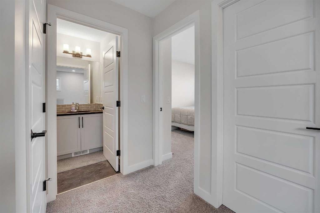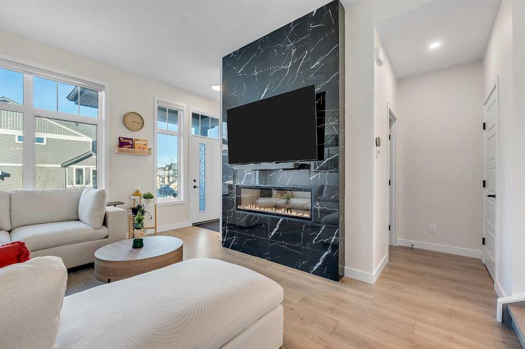 Welcome to this stunning 2024 Jayman BUILT detached home, perfectly positioned on a corner lot with exceptional curb appeal and everyday convenience. Offering 3 bedrooms, 2.5 bathrooms, and a detached double garage, this home is packed with thoughtful upgrades and energy-efficient features throughout. Step inside to be greeted by soaring 10-foot ceilings at the entry with massive windows flooding the space with natural light, transitioning to 9-foot ceilings throughout the main level and upstairs, creating a bright and open atmosphere with dark waterproof laminate covering every inch of the main floor. The main living space features a tiled bump-out with a sleek electric fireplace, contrasting beautifully against the bright kitchen. The kitchen is finished with a chimney-style hood fan, quartz countertops contrasting against the bright white mosaic backsplash, and modern black hardware, creating a cohesive, bold, and contemporary look. Up the stairs, an additional window above the staircase floods the home with natural light. The primary suite impresses with a dual vanity and walk-in shower. Built with efficiency in mind, the home includes triple-pane windows and 10 solar panels to keep your bills low! Outside, enjoy ample parking thanks to the corner-lot in front of the home and beside, as well as easy street-side access to the garage, with no long alley drives required. Located just minutes from Shaganappi Trail, this home offers quick access to major routes, numerous shopping options, and a range of amenities. A perfect blend of modern design, smart upgrades, and everyday functionality, this home truly checks all the boxes! Contact your favourite realtor today for a tour; this one won’t last long!