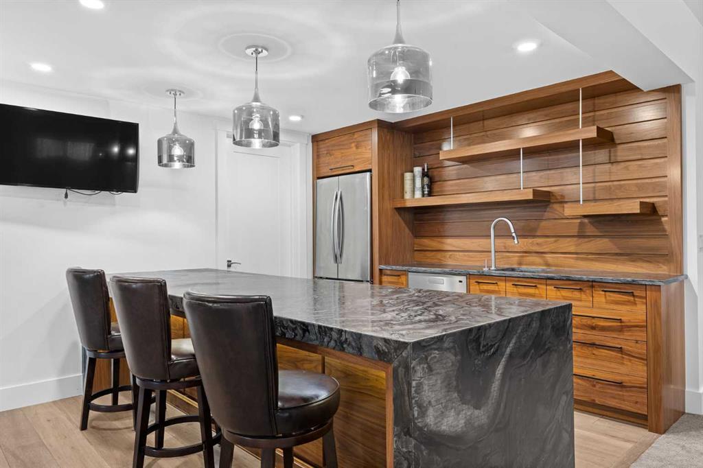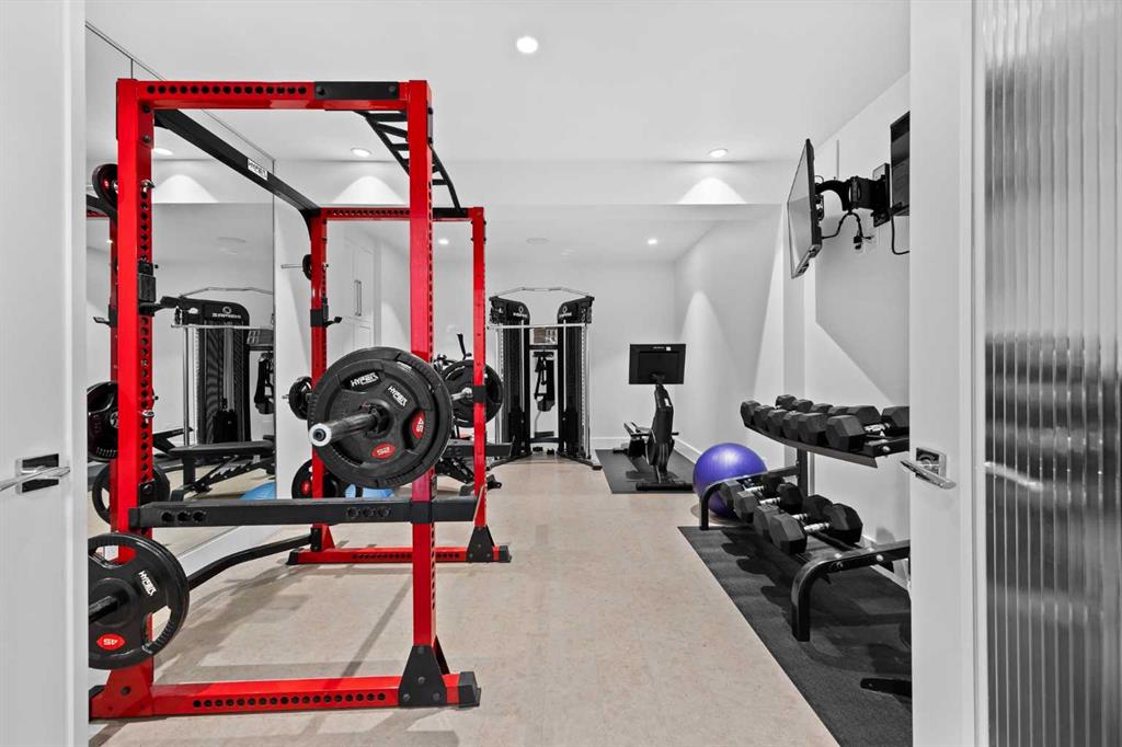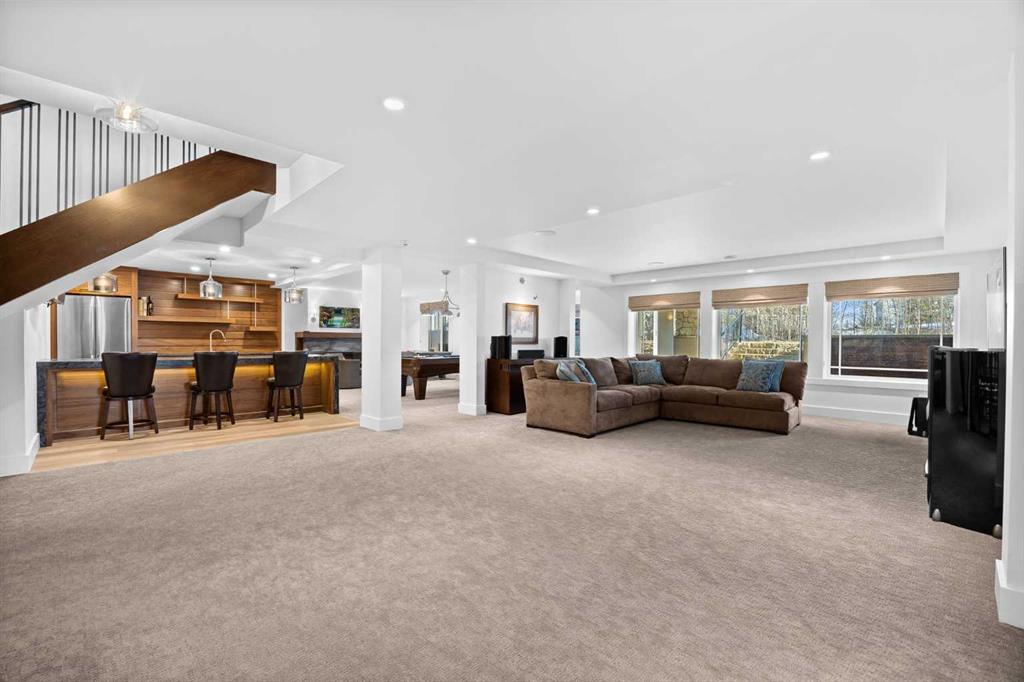 The walkout lower level is designed for lifestyle. A full recreation space, games area with pool table, temperature-controlled wine room, bar with fridge and dishwasher, and a dedicated gym create an ideal environment for both entertaining and everyday enjoyment. A surround sound system and whole-home Control4 automation extend seamlessly throughout the home, including outdoor spaces.