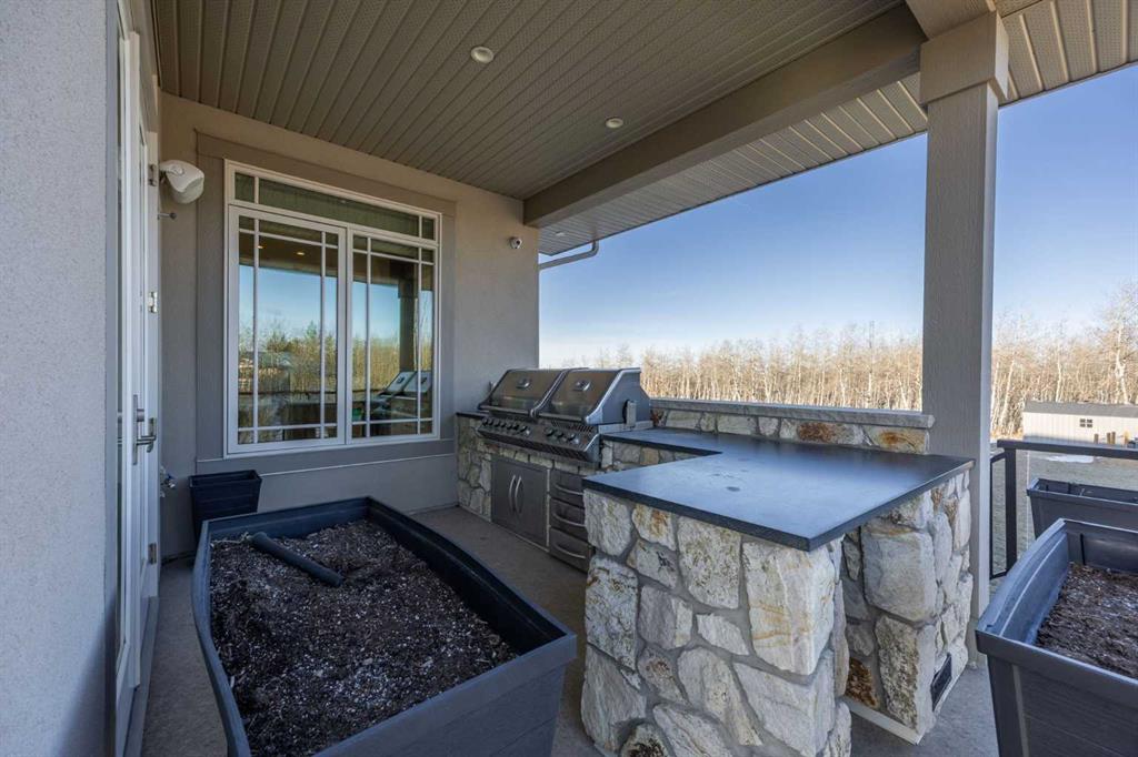 The exterior is equally impressive. Surrounded by mature trees and backing onto a ravine, the setting is private and peaceful. Enjoy the fully equipped outdoor BBQ kitchen, expansive deck spaces, and a swim spa, along with irrigation systems for both landscaped areas and broader property use. A fully enclosed dog run adds another thoughtful touch for acreage living.