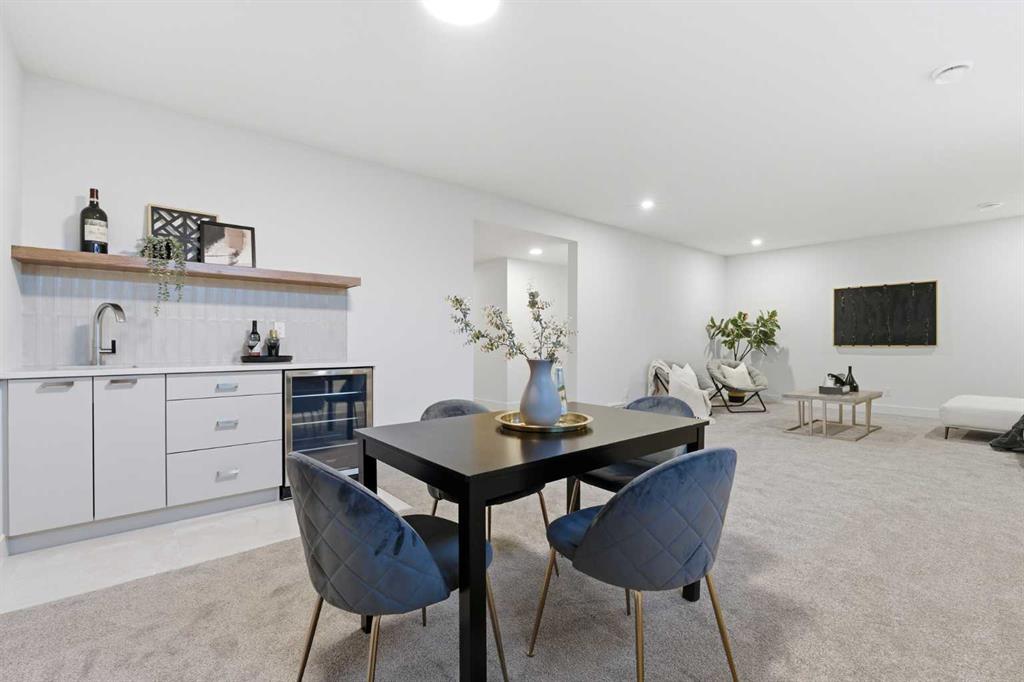 The fully developed basement extends the home’s refined design, boasting 9-ft ceilings, a wet bar with beverage center, a recreation area, a fourth bedroom, and a full bathroom, along with generous storage in the large utility room.