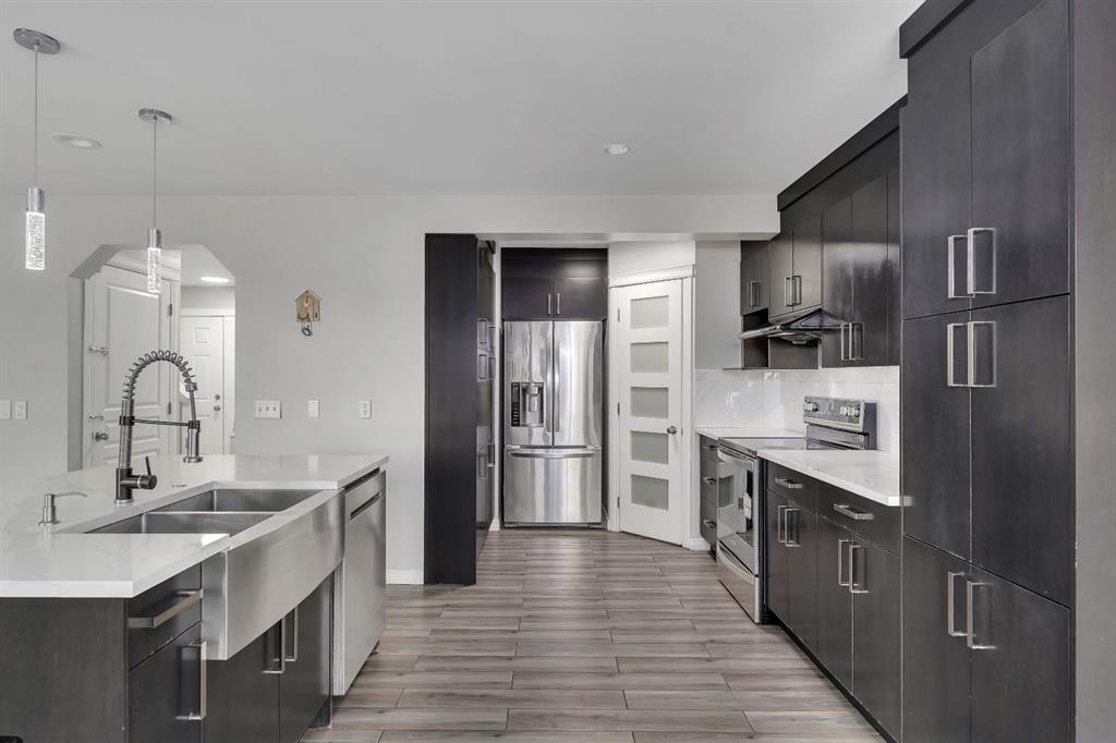 PRICED TO SELL!!! Welcome to this stunning fully upgraded east-facing 2-storey home in the desirable community of Saddlebrook, perfectly situatedbacking onto GREENSPACE, PARK AND SCHOOL. This elegant residence features 3 bedrooms, 2.5 baths, and a professionally finished basement witha separate entry. The main floor offers a spacious, sun-filled family room and a beautifully renovated gourmet kitchen complete with granitecountertops, a pantry, island, electric stove, and refrigerator. A charming dining nook overlooks the backyard, while the convenience of main floorlaundry and elegant ceramic tile flooring add to the home’s appeal. Upstairs, the luxurious primary suite boasts a walk-in closet and upgraded ensuitewith a multifunction shower panel and glass doors. Two additional bedrooms and a generous bonus room with a cozy corner fireplace complete theupper level, which features modern laminate flooring and no popcorn ceilings. The basement provides excellent versatility with a one-bedroom pluslarge den setup, a full kitchen, and a 4-piece bath—ideal for extended family or rental potential (illegal suite). Outside, the yard includes qualityconcrete work and a 10×10 storage shed, and the heated garage is equipped with a 50,000 BTU Big Maxx Mr. Heater and Costco panel storage foroptimal organization. Conveniently located near bus stops, Genesis Centre, Saddletowne C-Train Station, schools, and all major amenities, thisbeautifully upgraded home offers the perfect blend of comfort, style, and functionality. DON’T MISS THIS OPPORTUNITY FOR OWNING THIS HOMEBACKING ONTO GREEN SPACE! BOOK YOUR SHOWING TODAY!!!