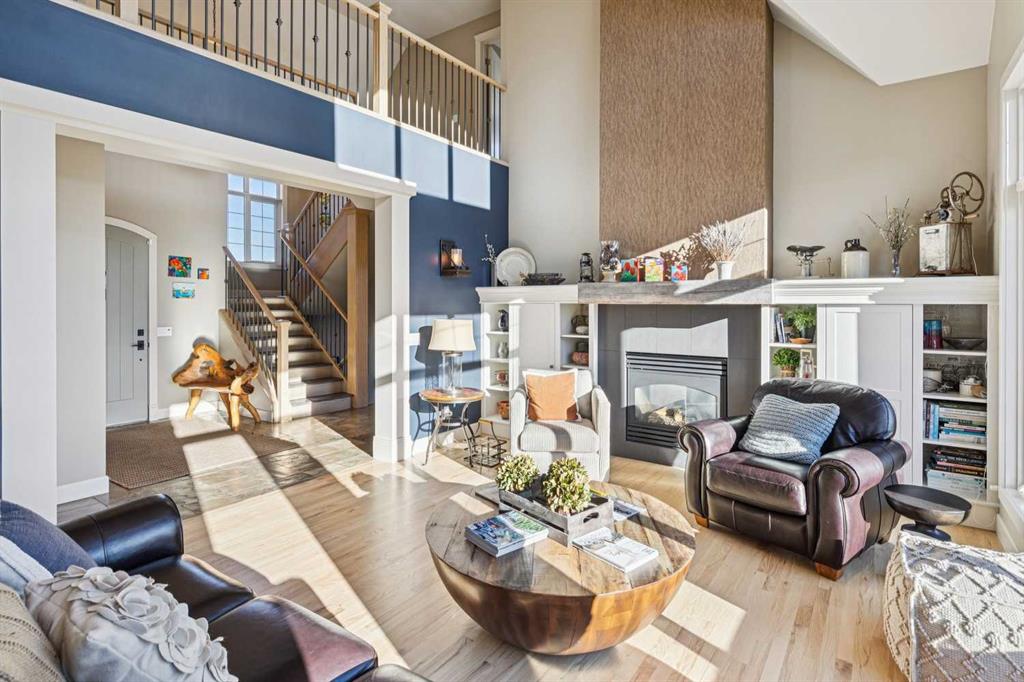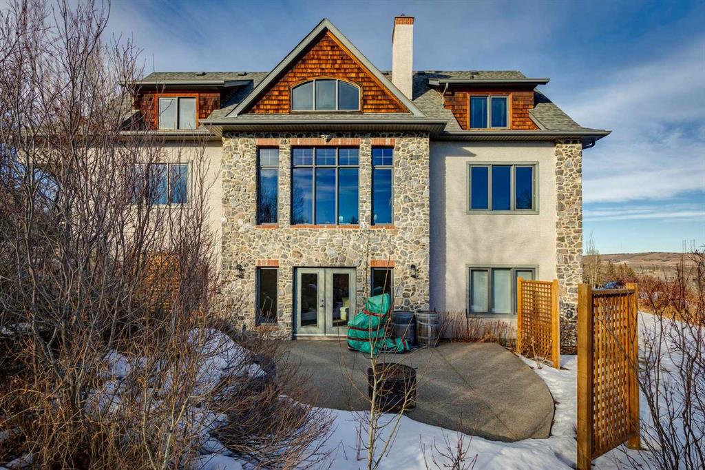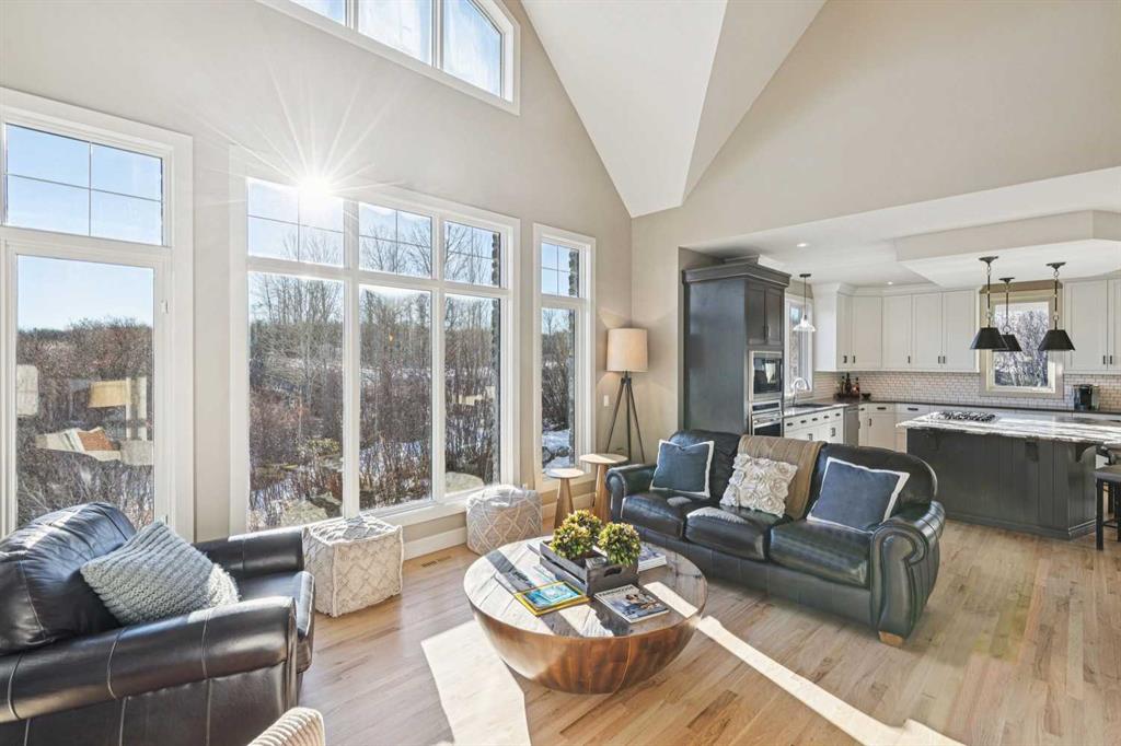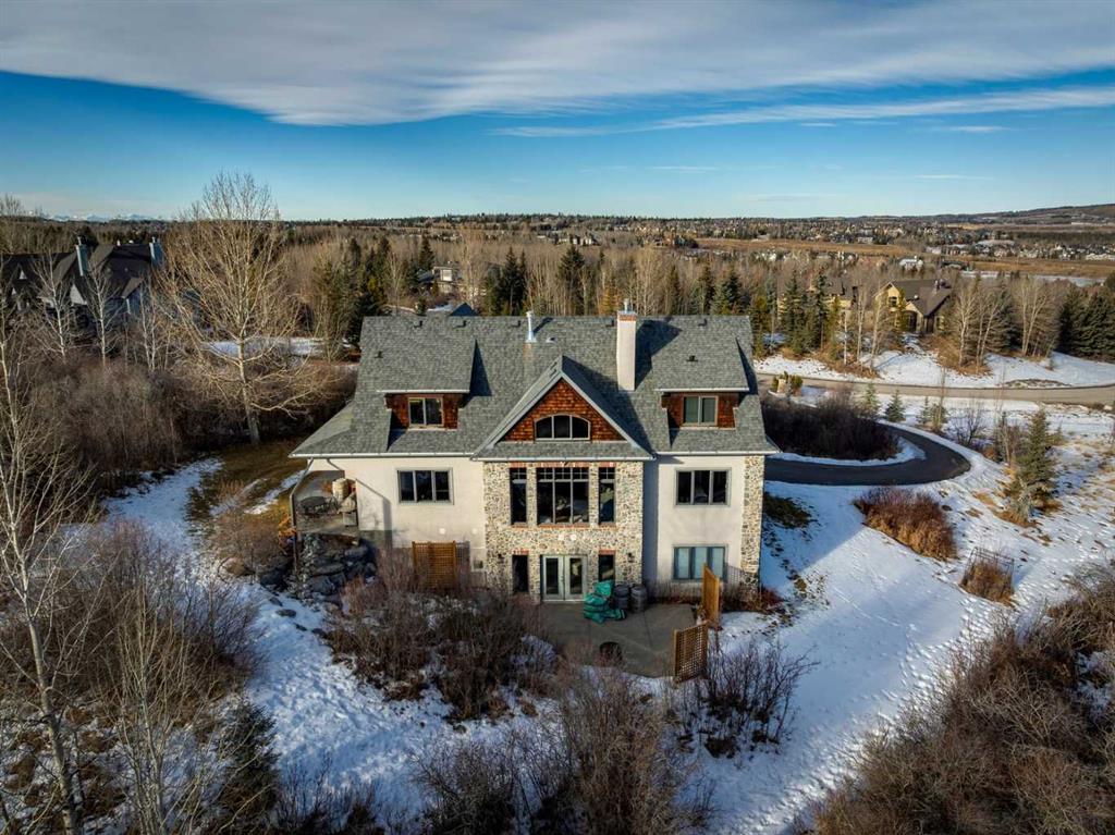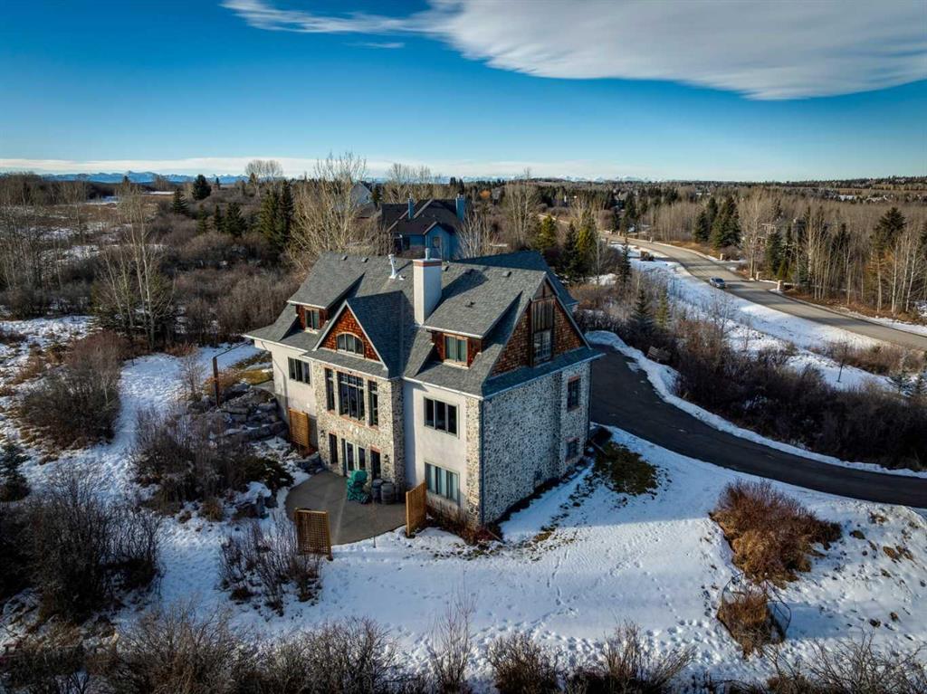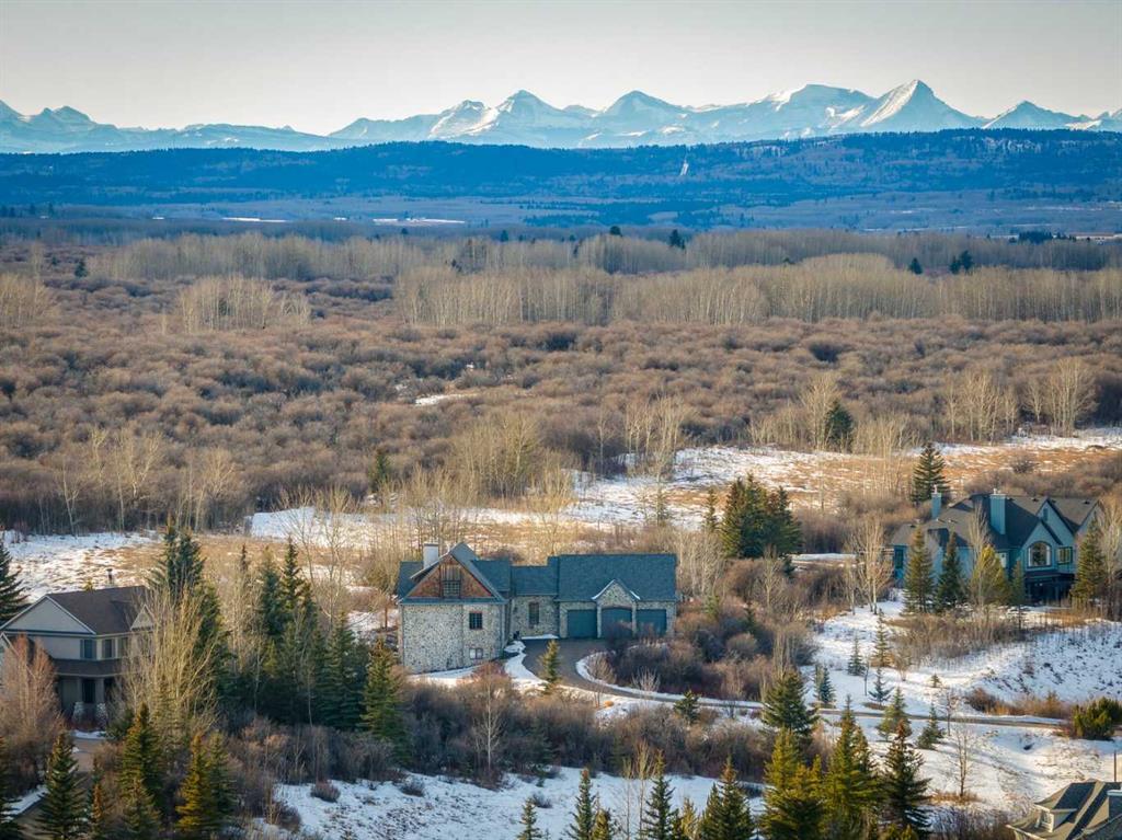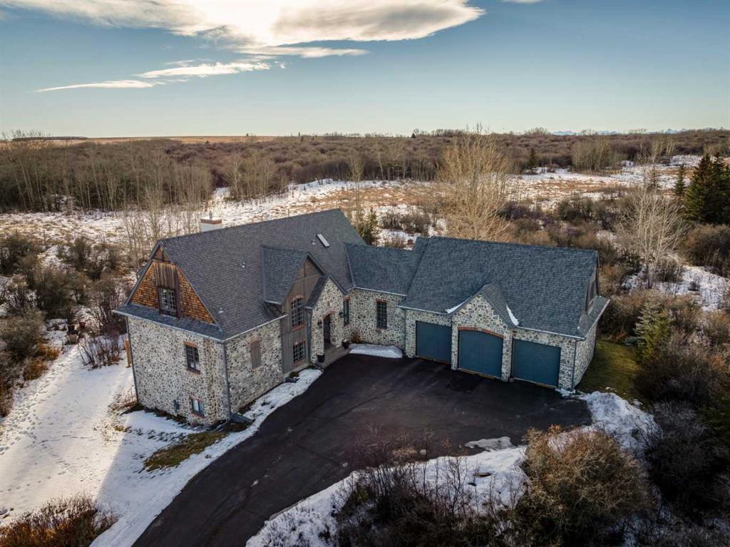 The French countryside awaits you in this spectacular 2,900 square foot one and one-half storey bungalow on a two-acre lot in the three-time award-winning “Canada Community of the Year”, Elbow Valley. Nestled in the Elbow River Valley, just west of Calgary, this prestigious community offers genuine estate living alongside unrivalled amenities. This beautifully upgraded and renovated home offers a dramatic open staircase, two storey foyer and great room ceilings, refinished quality hardwood floors throughout the main floor, staircases, and upper level. The professionally renovated kitchen was expanded and features shaker-style cabinets with soft- close doors, quality Wolf and JennAir stainless steel appliances, a feature center island with a special one-piece curved leather-finished granite cooktop. The formal dining room, warm and inviting with its coffered ceilings and hardwood floors, is perfect for entertaining. The main floor primary bedroom features a walk-through closet with custom built-ins and a luxurious ensuite bathroom that has heated porcelain tile floors, 10-mil glass shower, quartz vanity countertops, and double sinks. Overlooking the great room below, the upstairs boasts two large bedrooms, each with a full ensuite bath, walk-in closets, and incredible views. Professional walkout basement development is perfect for the mature family with a billiards/games room, a family room with a built-in entertainment center, a custom bar, a second fireplace, a full bath, two more bedrooms with new flooring, and multiple storage spaces to utilize by design. No-maintenance landscaping designed to blend into the natural surroundings features an exposed aggregate patio, a dry creek bed, a continuous curb, a natural Rundlestone exterior, and total privacy. Oversized triple attached heated garage with a developed 300 sq. ft. bonus room, perfect for a man cave, home office, or storage. Walk-up staircase to the garage, slab heating in the basement, upgraded mechanical, and 200-amp service. A blend of smooth-finished and knocked down stipple ceilings, renovated baths, upgraded lighting, solid core doors, nine-foot ceilings, laundry on the main and upper levels, clad windows in good condition, with three new triple pane windows added. From its sweeping views and prime location to its thoughtful design and upgrades, this beautiful Elbow Valley home is an absolute must-see!