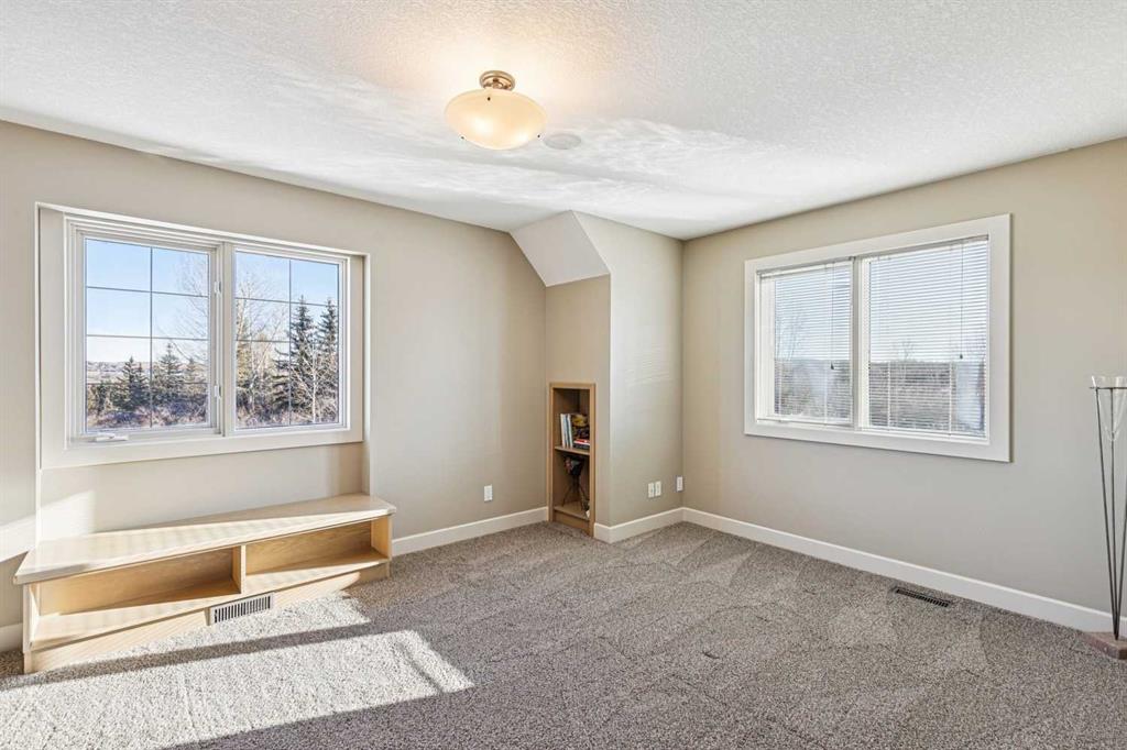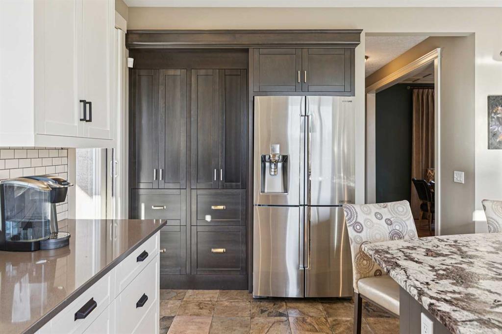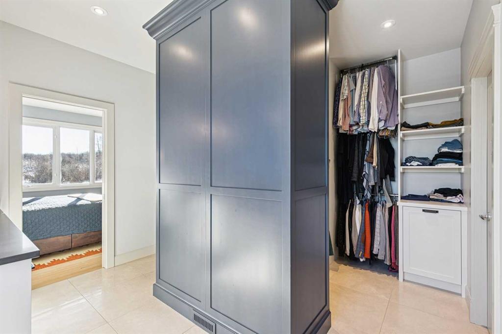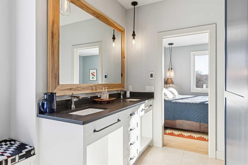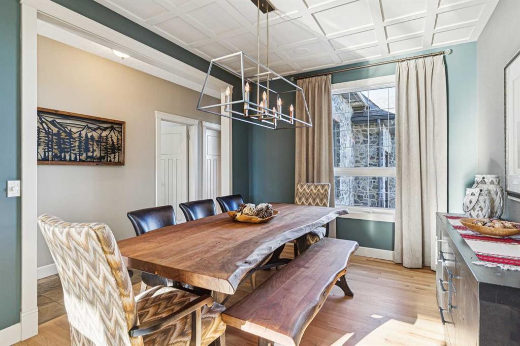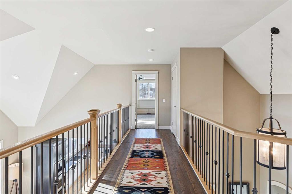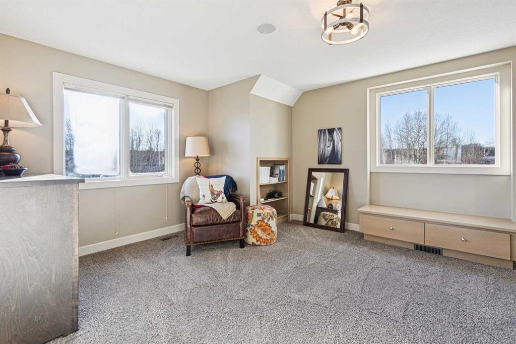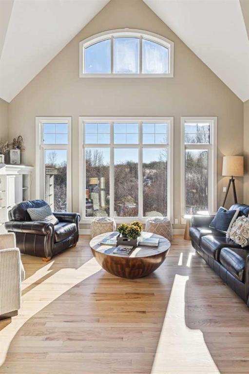 The French countryside awaits you in this spectacular 2,900 square foot one and one-half storey bungalow on a two-acre lot in the three-time award-winning “Canada Community of the Year”, Elbow Valley. Nestled in the Elbow River Valley, just west of Calgary, this prestigious community offers genuine estate living alongside unrivalled amenities. This beautifully upgraded and renovated home offers a dramatic open staircase, two storey foyer and great room ceilings, refinished quality hardwood floors throughout the main floor, staircases, and upper level. The professionally renovated kitchen was expanded and features shaker-style cabinets with soft- close doors, quality Wolf and JennAir stainless steel appliances, a feature center island with a special one-piece curved leather-finished granite cooktop. The formal dining room, warm and inviting with its coffered ceilings and hardwood floors, is perfect for entertaining. The main floor primary bedroom features a walk-through closet with custom built-ins and a luxurious ensuite bathroom that has heated porcelain tile floors, 10-mil glass shower, quartz vanity countertops, and double sinks. Overlooking the great room below, the upstairs boasts two large bedrooms, each with a full ensuite bath, walk-in closets, and incredible views. Professional walkout basement development is perfect for the mature family with a billiards/games room, a family room with a built-in entertainment center, a custom bar, a second fireplace, a full bath, two more bedrooms with new flooring, and multiple storage spaces to utilize by design. No-maintenance landscaping designed to blend into the natural surroundings features an exposed aggregate patio, a dry creek bed, a continuous curb, a natural Rundlestone exterior, and total privacy. Oversized triple attached heated garage with a developed 300 sq. ft. bonus room, perfect for a man cave, home office, or storage. Walk-up staircase to the garage, slab heating in the basement, upgraded mechanical, and 200-amp service. A blend of smooth-finished and knocked down stipple ceilings, renovated baths, upgraded lighting, solid core doors, nine-foot ceilings, laundry on the main and upper levels, clad windows in good condition, with three new triple pane windows added. From its sweeping views and prime location to its thoughtful design and upgrades, this beautiful Elbow Valley home is an absolute must-see!