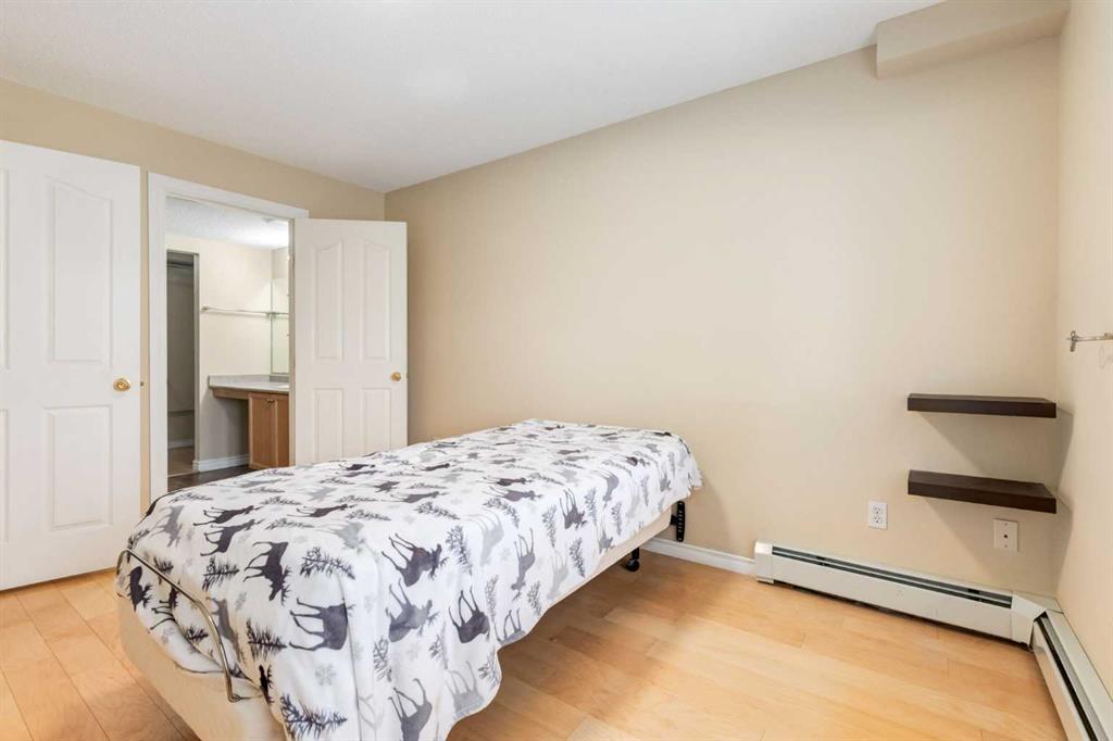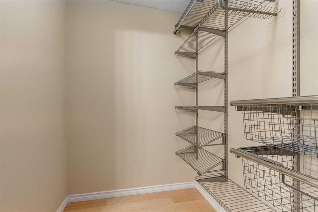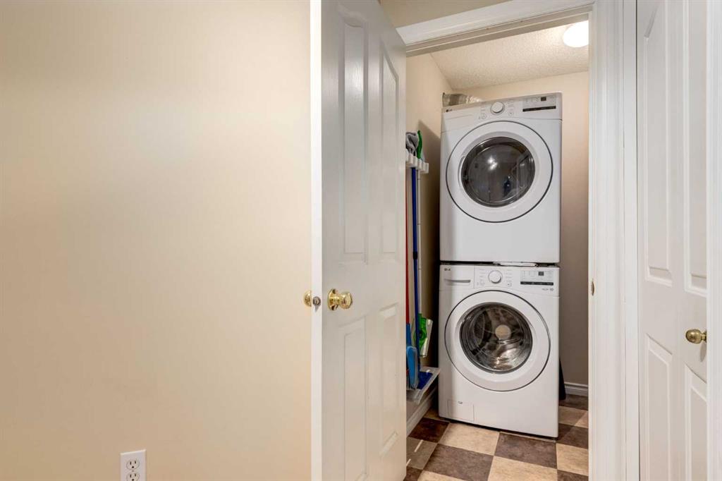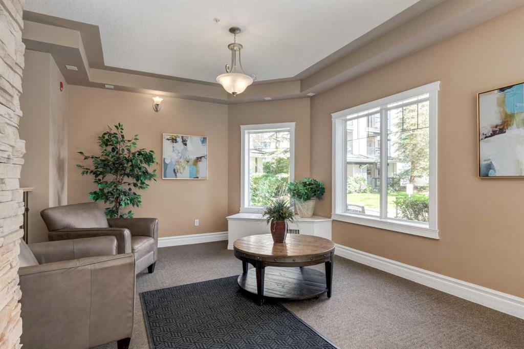 Welcome to this fully renovated, move-in ready 2-bedroom, 2-bathroom home in the highly desirable Pavilions at Rocky Ridge — an ideal choice for anyone looking for modern style, great amenities, and easy access to transit. The open-concept layout brings in plenty of natural light, with a bright living room and kitchen that flow seamlessly together. Step out onto your private balcony to enjoy the beautiful southwest warm morning sun. The balcony also includes a gas hookup for your BBQing convenience. The spacious primary bedroom features a 3-piece ensuite and a walk-in closet that feature closet organizer. The second bedroom works well for guests, a home office, or a roommate and comes with built-in Murphy bed. You’ll also love the full-size laundry room with extra storage and newer stacked washer/dryer, plus an additional storage space right on the balcony. Your titled underground parking stall is conveniently located just steps from the elevator, making year-round access simple and comfortable. This unit also comes with 2 parking passes allowing for street parking as well. Residents of The Pavilions enjoy an impressive range of amenities, including a fitness centre, theatre room, library, social room, and a games room with a pool table and more. All of this is set within a quiet, well-managed community close to the Rocky Ridge LRT, parks, pathways, and all the conveniences of Northwest Calgary.