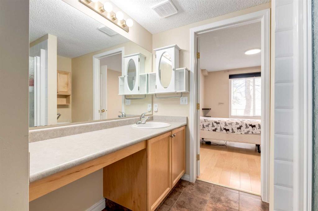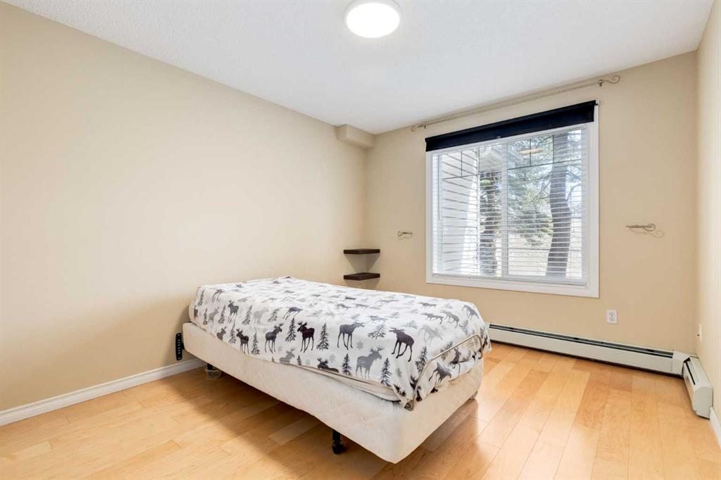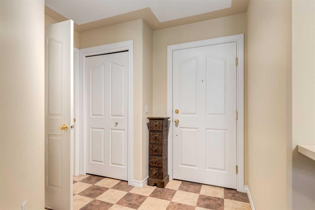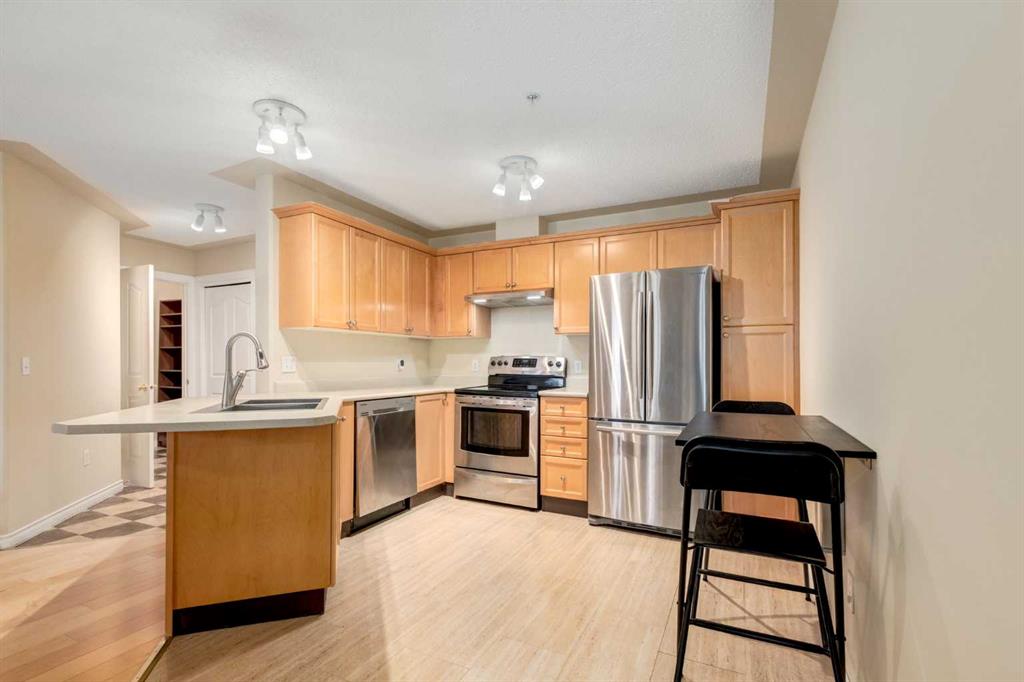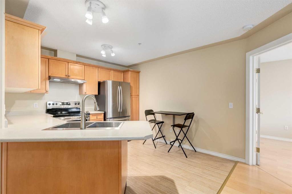 Welcome to this fully renovated, move-in ready 2-bedroom, 2-bathroom home in the highly desirable Pavilions at Rocky Ridge — an ideal choice for anyone looking for modern style, great amenities, and easy access to transit. The open-concept layout brings in plenty of natural light, with a bright living room and kitchen that flow seamlessly together. Step out onto your private balcony to enjoy the beautiful southwest warm morning sun. The balcony also includes a gas hookup for your BBQing convenience. The spacious primary bedroom features a 3-piece ensuite and a walk-in closet that feature closet organizer. The second bedroom works well for guests, a home office, or a roommate and comes with built-in Murphy bed. You’ll also love the full-size laundry room with extra storage and newer stacked washer/dryer, plus an additional storage space right on the balcony. Your titled underground parking stall is conveniently located just steps from the elevator, making year-round access simple and comfortable. This unit also comes with 2 parking passes allowing for street parking as well. Residents of The Pavilions enjoy an impressive range of amenities, including a fitness centre, theatre room, library, social room, and a games room with a pool table and more. All of this is set within a quiet, well-managed community close to the Rocky Ridge LRT, parks, pathways, and all the conveniences of Northwest Calgary.