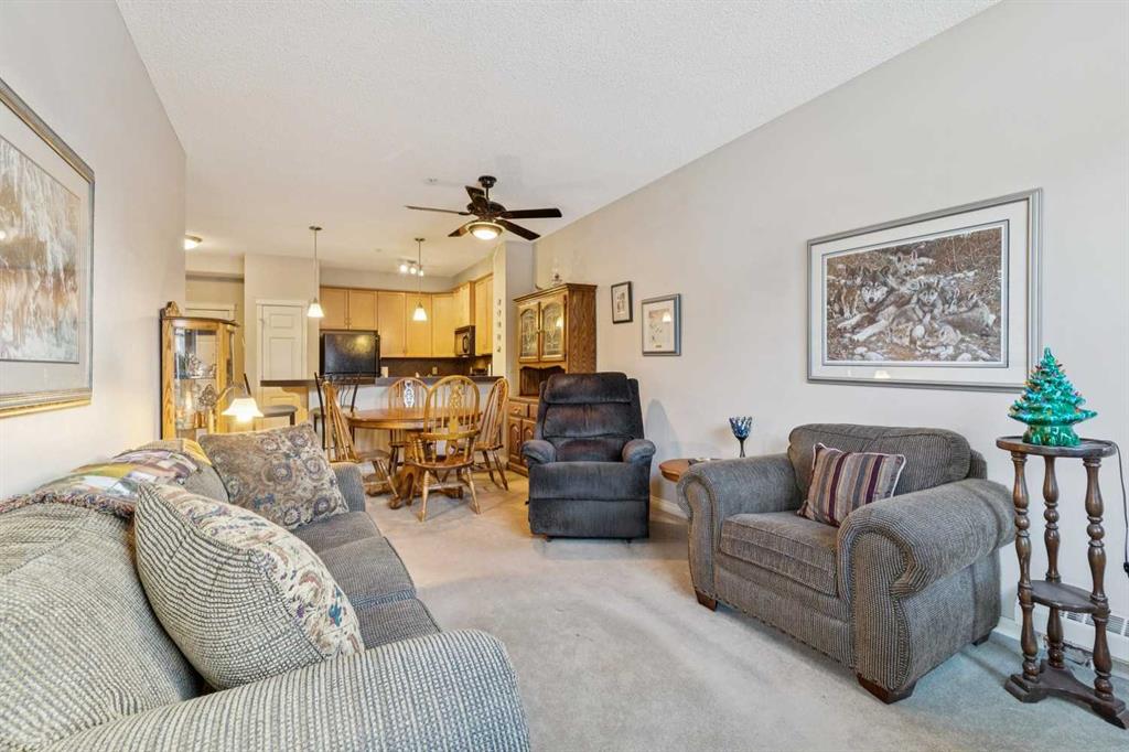 Step into this open-concept main floor unit, where functional design meets everyday comfort. Beginning with the stylish kitchen, you will find maple cabinetry, a diamond-pattern backsplash, black and stainless steel appliances, and a breakfast bar create a space that is both practical and inviting, with plenty of room for casual meals or morning coffee. From here, the layout opens seamlessly into the dining and living areas, offering an easy flow that extends out to a main floor patio, creating a lovely outdoor retreat for fresh air, a quiet morning start, or unwinding at the end of the day. The primary bedroom is comfortably sized and well positioned for privacy, while the second bedroom offers flexibility for guests, a home office, or additional living space as needed. Both bedrooms share a full 4-piece bathroom. Set in the established community of McKenzie Towne, this condo enjoys access to an abundance of nearby amenities. Parks, pathways, playgrounds, splash park, schools, and green spaces are all close at hand, along with the shops, restaurants, and everyday conveniences that make this southeast Calgary neighbourhood so well loved. With easy access to major routes and a strong sense of community, this is a home that offers both comfort and connection.