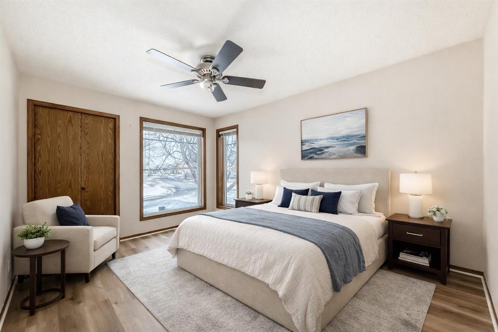 Beautifully maintained, open-concept bungalow with a rare loft, located in the heart of Somerset. This home offers 2 bedrooms on the main level plus 2 additional bedrooms in the fully developed basement. Features include vaulted ceilings throughout, two large architectural skylights, and a unique loft overlooking the living area. The spacious primary bedroom boasts a 5-piece ensuite with jetted tub and heated bathroom floors. Quality upgrades include superior cabinetry, granite countertops, stainless steel appliances, double-oven electric range, upgraded lighting, central A/C, and new LVP flooring in the living room. The basement is complete with 2 large bedrooms, 4-piece bathroom, den, and ample storage. Enjoy the landscaped, south-facing backyard with retractable awning and gas BBQ hookup, ideal for entertaining. Move-in ready with updates including roof & partial vinyl siding (2022), electric range (2022), fridge (2025). Walking distance to C-Train, water park, schools, shopping, and YMCA. Flexible possession available.