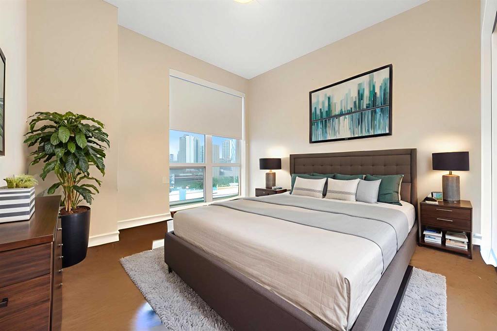 Perched on the 11th floor with sweeping, unobstructed views of the River Valley and Rocky Mountains, this bright corner unit combines comfort, functionality, and an unbeatable location. Featuring an open-concept layout, the home offers laminate flooring in the living and dining areas, creating a fresh and modern feel throughout the main living space. The kitchen is well-appointed with generous cabinetry, ample counter space, and a sunny window that floods the space with natural light. Two spacious bedrooms provide flexible living options, while a 4-piece bathroom with soaker tub, insuite laundry, and a titled indoor parking stall add everyday convenience. Residents of The Vantage enjoy access to a fitness centre, bike storage, and concierge services, all within walking distance to shopping, restaurants, the river pathway system, and downtown. Whether you’re a first-time buyer, urban professional, or savvy investor, this unit offers exceptional value and incredible views in one of the city’s most desirable locations.