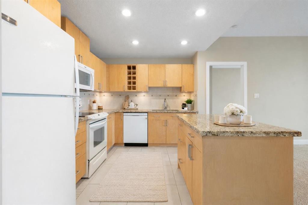 Welcome to Encore at Westgate Park, a well-managed concrete high-rise condo offering panoramic east-facing views of downtown Calgary and Shaganappi Golf Course. This 2 bedroom, 2 bathroom condo combines space, light, privacy, and unbeatable west-side convenience—perfect for professionals, downsizers, or investors seeking a view-oriented home in a highly connected location. The thoughtfully designed layout features 9-foot ceilings and large windows that flood the home with natural light throughout the day. The open-concept living area is anchored by a cozy gas fireplace and flows seamlessly into the kitchen, which offers granite countertops, a large centre island, and ample cabinet space—ideal for entertaining or everyday living. Steam-cleaned carpets and a well-maintained interior makes this property move-in-ready. The primary bedroom is generously sized and includes a massive walk-in closet and a private 4-piece ensuite bathroom. The second bedroom offers excellent flexibility and works beautifully as a roommate space, home office, study, or creative retreat. A second full bathroom and in-suite laundry add everyday convenience. Air conditioning ensures year-round comfort. This home includes titled underground parking and a separate, secure storage locker located in a locked room—keeping belongings clean, dust-free, and more secure. Pet-friendly building (with board approval). The solid concrete construction provides superior sound insulation, offering a quieter living experience with minimal noise transfer. Residents enjoy resort-style amenities including a large indoor swimming pool, hot tub, fully equipped fitness centre, games and recreation room with pool table and table tennis, bike storage, bookable conference rooms, and 24-hour on-site security. Ample underground visitor parking adds extra convenience for guests. Condo fees include all utilities except electricity, offering excellent value and predictable monthly costs. Located in one of Calgary’s most connected west-side locations, the Westbrook LRT station is just steps away, providing quick access to downtown. Westbrook Mall is connected via skywalk, offering direct indoor access to Walmart, Safeway, dining, and everyday services. Shaganappi Golf Course is next door, while the Bow River pathway system, Edworthy Park, and Douglas Fir Trail are minutes away. Easy access to Bow Trail, Sarcee Trail, and the Trans-Canada Highway puts the mountains within reach. A rare opportunity to own a quiet, concrete condo with views, amenities, and unmatched transit access at Encore Westgate Park.