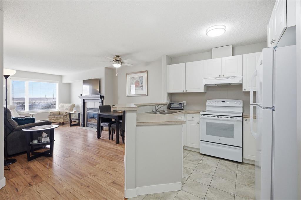 Experience elevated living in this beautifully maintained condo, where the sunny south exposure provides unobstructed panoramic views stretching from the downtown skyline to WinSport and onto the breathtaking Rocky Mountains. Rarely do these ultra private units come up for sale. Offering 817 sq ft of thoughtfully designed living space, this home features two spacious bedrooms and a full bathroom. You’re immediately welcomed by the open-concept floor plan and gleaming laminate flooring, allowing natural light to flow throughout. The crisp white kitchen, complete with a convenient breakfast bar, provides plenty of cupboard/counter space and opens seamlessly into the living and dining areas—perfect for both everyday living and entertaining. Step outside to the expansive south-facing balcony, featuring a gas line for your BBQ. Over 20 feet long- It’s an ideal retreat for morning coffee, evening sunsets, wildlife watching, or simply taking in the incredible views. The primary suite includes a generous walk-in closet, while the second bedroom offers flexibility for family, guests or a home office. Additional highlights include in-suite laundry, a heated underground parking stall, and a separate storage unit. Residents of Arbour Lake Landing enjoy access to excellent building amenities, including a fitness centre, library, and a reservable social room for private gatherings. Your community membership also provides exclusive year-round lake access, with opportunities for swimming, paddle boarding, skating, and more. With nearby transit, shopping, restaurants, schools, and easy access to the mountains, this home perfectly balances lifestyle and convenience. This is a very well managed complex with low condo fees. Don’t miss your chance to own this exceptional home in NW Calgary’s desirable lake community.