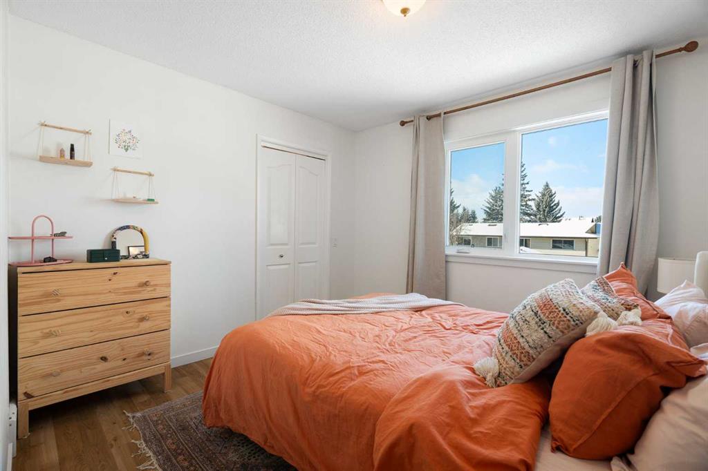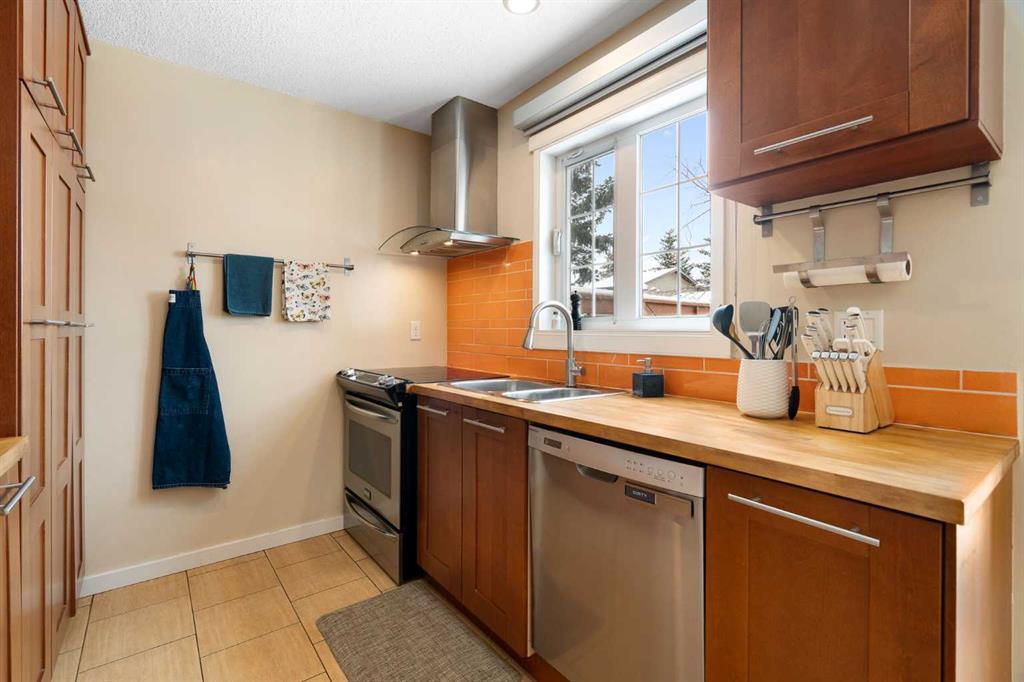 beautiful views and a peaceful setting right outside your front door. Enjoy the convenience of being just steps away from the community center and local schools—an ideal location for families. Inside, you’ll find a thoughtfully updated kitchen featuring shaker cabinets and warm wood countertops, a stainless steel appliance package, for a clean, modern look. The main floor also boasts a generous living room, perfect for entertaining or relaxing, along with a convenient two-piece bathroom. Upstairs, the spacious primary bedroom offers a generous walk-in closet, while two additional bedrooms and a well-appointed four-piece bathroom complete the upper level. The fully developed basement adds even more living space, featuring a versatile bedroom or family area, along with a three-piece bathroom enhanced with in-floor heating—perfect for added comfort year-round. Additional upgrades include siding (believed to be Hardie Board) with extra insulation (2014), windows (2014), asphalt shingles (2017), hot water tank (2019), and modern lighting throughout. Convenient garden door off kitchen leads to the sunny backyard, complete with an expansive deck—ideal for relaxing or hosting gatherings. Pie shaped lot offers space for garage (subject to City of Calgary approval). This is a fantastic opportunity to own a move-in-ready home in a highly desirable location.