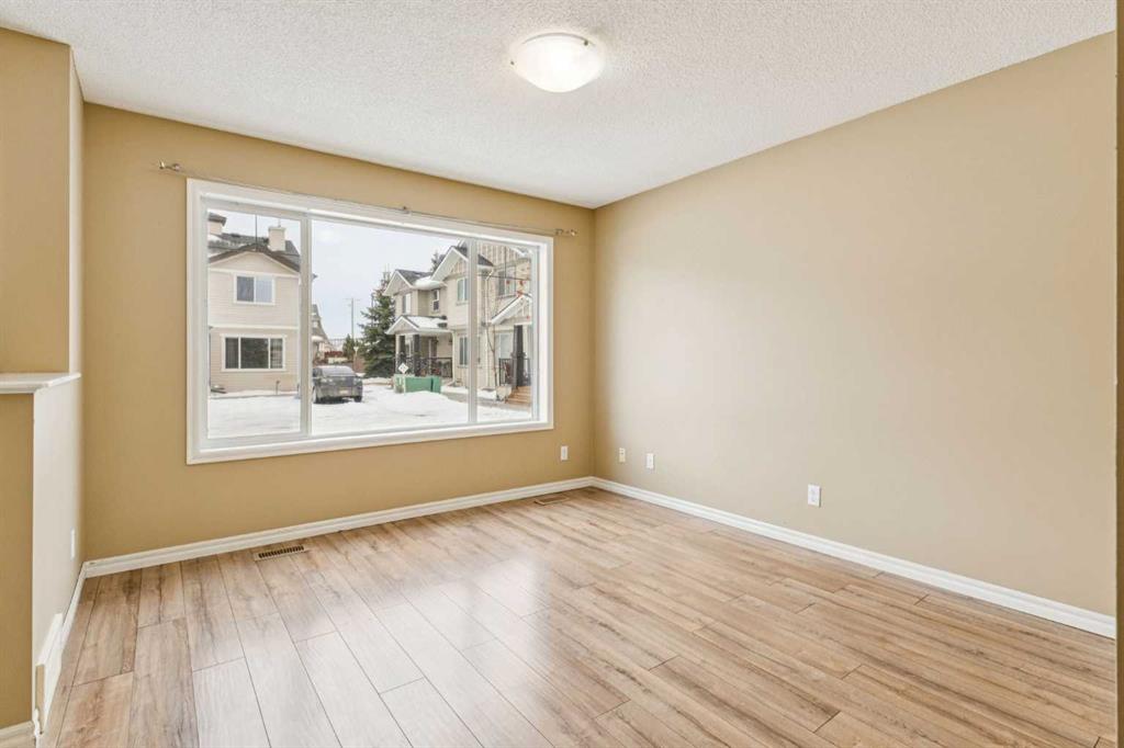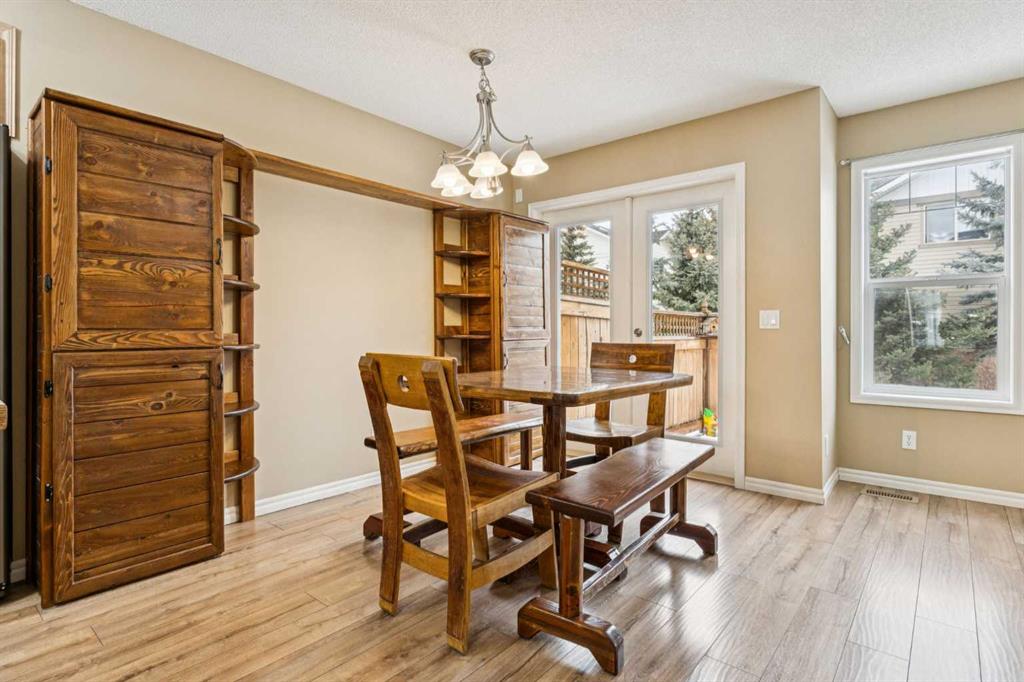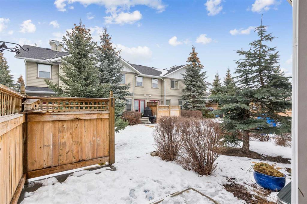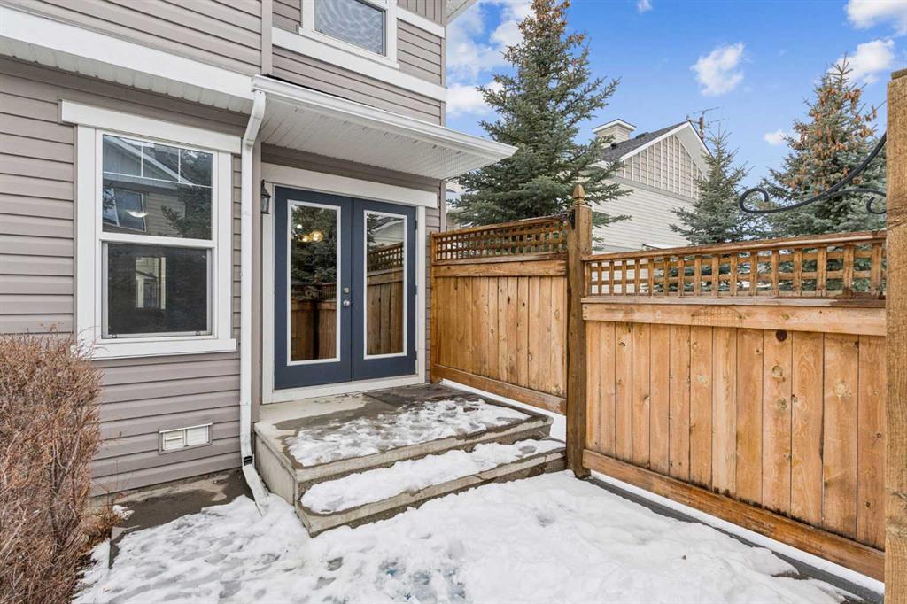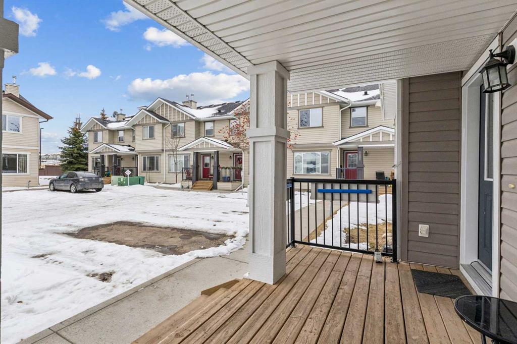 Welcome to the Patios of Sagewood! This lovely corner unit townhome with front porch charm features 3 spacious bedrooms and 2 titled parking stalls. The main floor is bright and open – being an end unit means extra windows with lots of natural light. The kitchen and dining area are open concept with laminate flooring. The kitchen boasts stainless steel appliances, an island and a pantry for extra storage. French doors in the dining area lead to your private backyard patio. There is even a front porch where you can sit and watch the kids play. The primary bedroom upstairs has a full ensuite and walk-in closet. There are 2 additional bedrooms upstairs and a second full bath. The basement is unfinished and perfect for storage. Call today!
