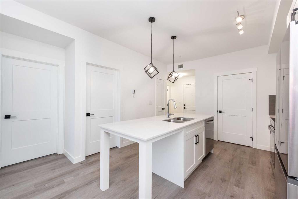Welcome to this beautifully upgraded 2-bedroom, 1-bathroom, main-floor condo in the vibrant community of Seton, where modern design meets everyday convenience. Perfectly located in the newly built Seton West complex, this home offers the ideal blend of style, comfort, and functionality, and it’s move-in ready! Step inside to discover an inviting open-concept layout featuring 9-foot ceilings, luxury vinyl plank flooring, and an abundance of natural light. The modern kitchen is a true showpiece, complete with quartz countertops, ceiling-height cabinetry, stainless steel appliances, and a large central island perfect for dining or entertaining. The living room features large windows and a feature wall, creating a warm and sophisticated ambiance. From here, step directly onto your private east-facing patio, overlooking a nearby greenspace, complete with a gas BBQ hookup and ground-floor access, making it easy to enjoy summer evenings or take your dog out for a walk. The primary bedroom offers comfort and style, highlighted by a custom feature wall and built-in shelving in the closet. The second bedroom is perfect as a guest room or home office. A pristine 4-piece bathroom, walk-in laundry room with custom cabinetry, and a pantry provide both practicality and convenience. Additional perks include a titled underground parking stall, a separate storage locker The neighborhood’s Homeowners Association (HOA) is nearing completion and will soon offer a splash park, hockey rink, tennis courts, and gardens, serving as the central gathering place. Ideally located within walking distance to shops, restaurants, schools, the South Health Campus, the South YMCA, and more, with quick access to Deerfoot and Stoney Trail for effortless commuting. This move-in ready gem offers a rare combination of luxury, convenience, and lifestyle, perfect for first-time buyers, downsizers, or investors alike. Don’t miss your opportunity to call this stunning Seton condo home!