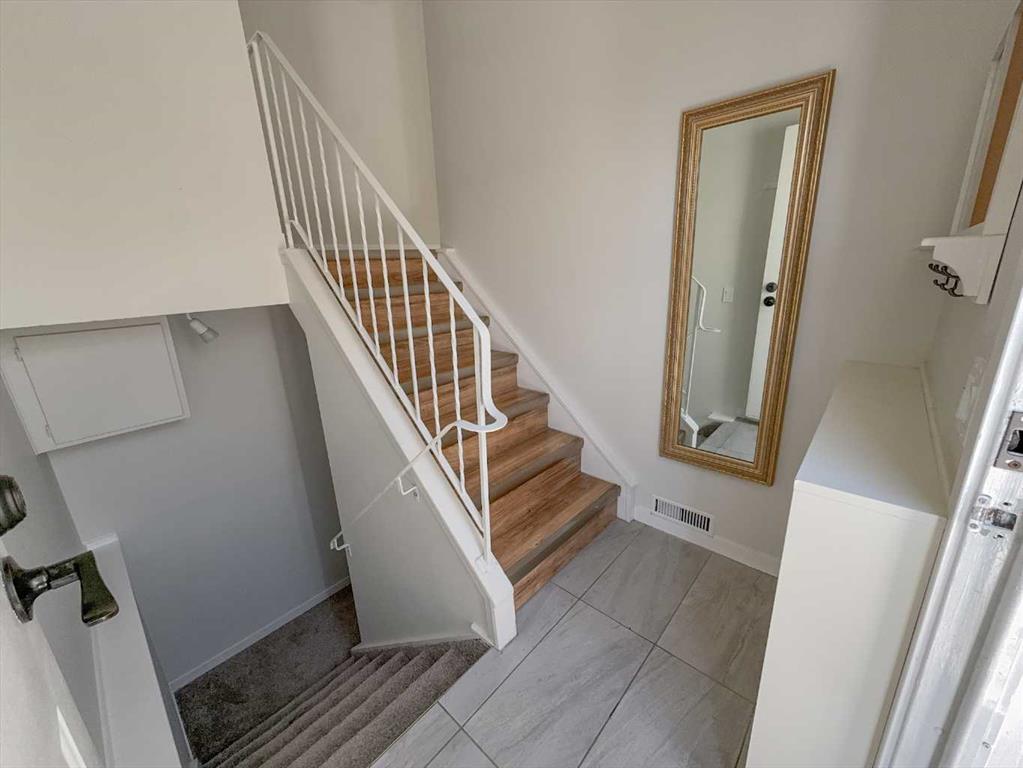 Beautifully renovated townhouse in Penbrooke Meadows. No condo fee. Very well maintained and clean, ready to move in. Main floor features large living room with big window for brightness, good size den, gourmet kitchen with patio door leading to big freshly painted deck on sunny west backyard. Professionally finished basement with two good size bedrooms and full bathroom. A lot of upgrades in this lovely home like newer kitchen cabinets and quartz counter tops (2019), newer roof (2019), newer windows ( 2019), newer furnace (2018), newer stove, new dishwasher, newer siding (2021), newer front deck/patio (2021). Perfect location on quiet and safe street close to schools, MAX Purple, parks, shopping and transportation
