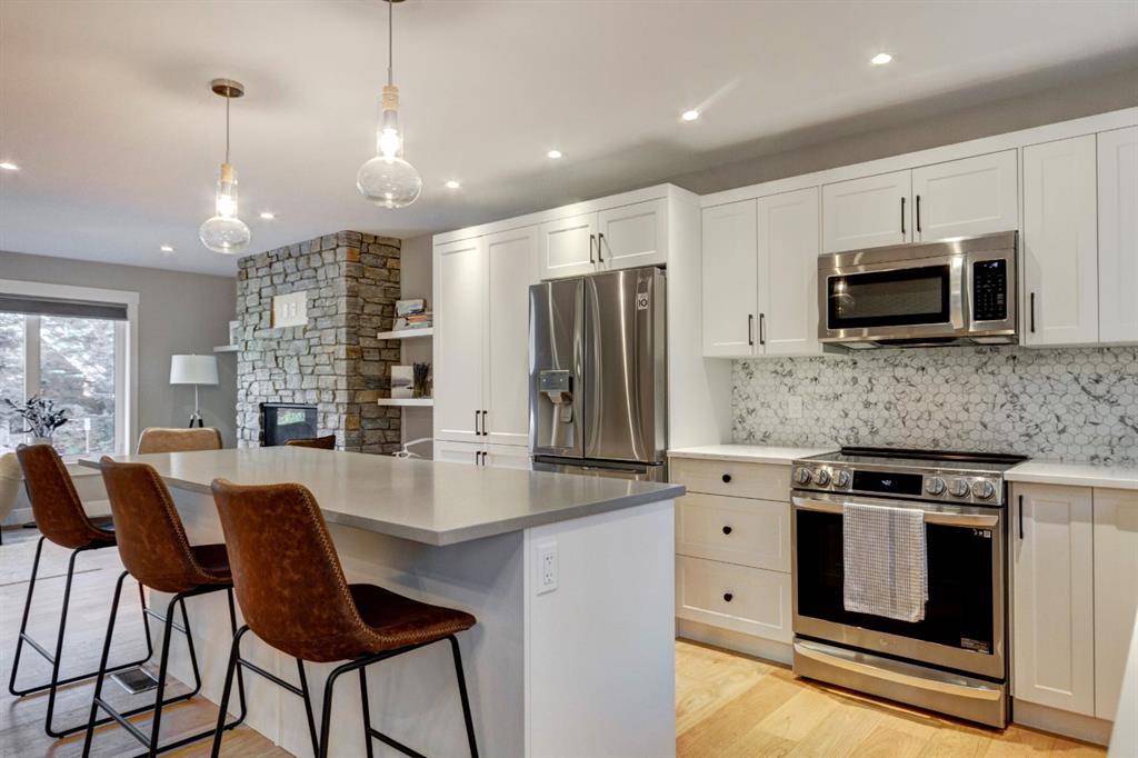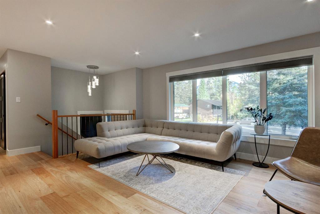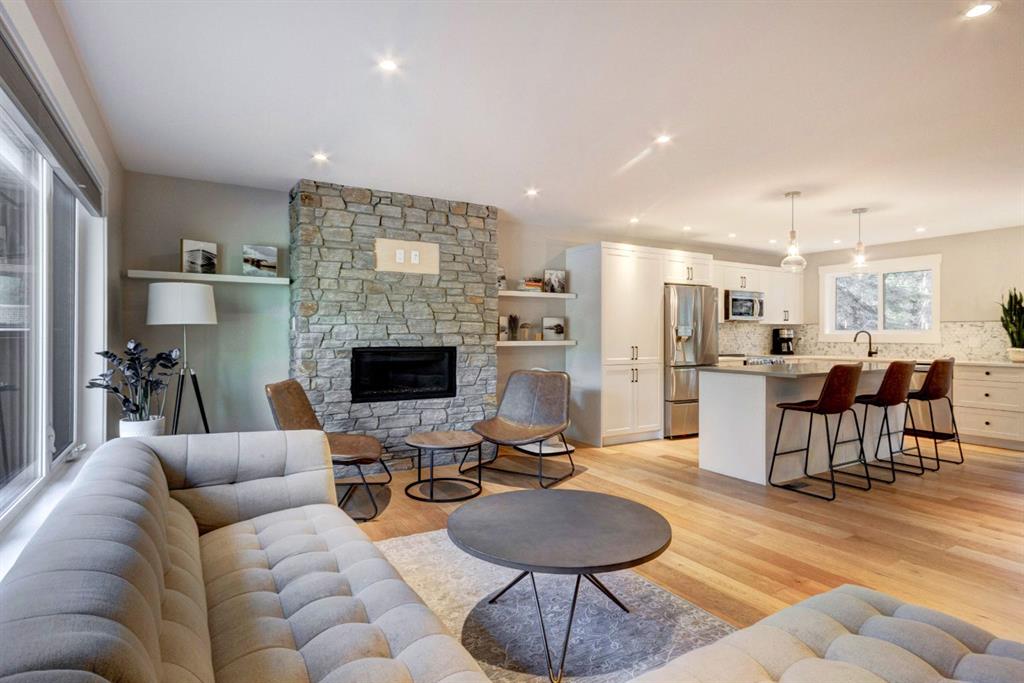 Fully renovated home on a quiet lot – steps from downtown. Beautifully updated home located in Canmore’s Larch neighbourhood. Set on a quiet lot with no rear neighbours, this property offers privacy and tranquility—just a short walk to downtown and the Bow River. With 1,936 sq ft of fully renovated living space, the home combines modern comfort with timeless mountain charm. The bright and open main floor features a thoughtfully designed kitchen, spacious dining area, and a cozy living room centered around a floor-to-ceiling natural stone gas fireplace. Three spacious bedrooms and two full bathrooms on the main level provide ample room for family or guests. The fully finished lower level adds even more space, with a large family room, fourth bedroom and third bath. Step outside to an expansive deck and fully fenced backyard—perfect for soaking in the mountain air. The oversized heated double garage offers plenty of storage and recent upgrades including a high-efficiency furnace and new windows enhance year-round comfort and energy savings. Enjoy panoramic mountain views from both the front and back of the home, and experience the peaceful atmosphere of one of Canmore’s most established and beloved neighbourhoods.