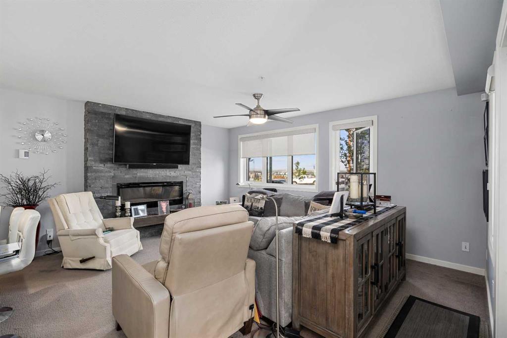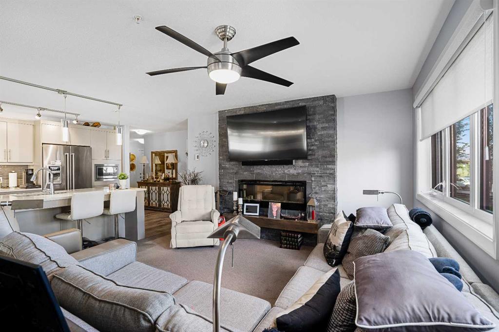 High-end finishes and thoughtfully curated upgrades define this elegant residence! Highlighted by a chef’s dream kitchen, featuring an extra-long island with seating. This condo perfect for entertaining and everyday living. Additional upgrades include tile flooring in the entryway, kitchen, and bathrooms; quartz countertops; premium stainless steel appliances; a designer backsplash; a custom window blind package; and a striking full-wall fireplace with mantle. Central air conditioning ensures year-round comfort.
