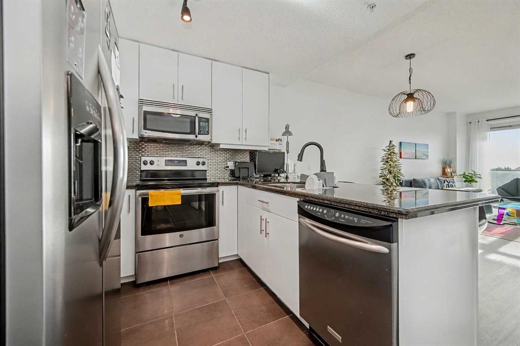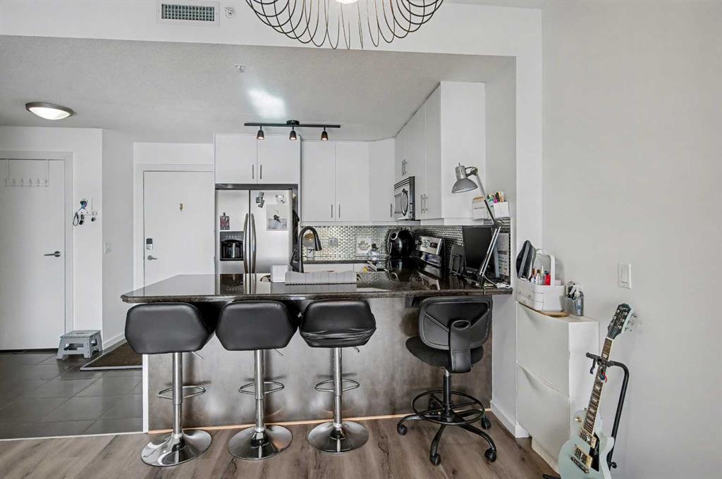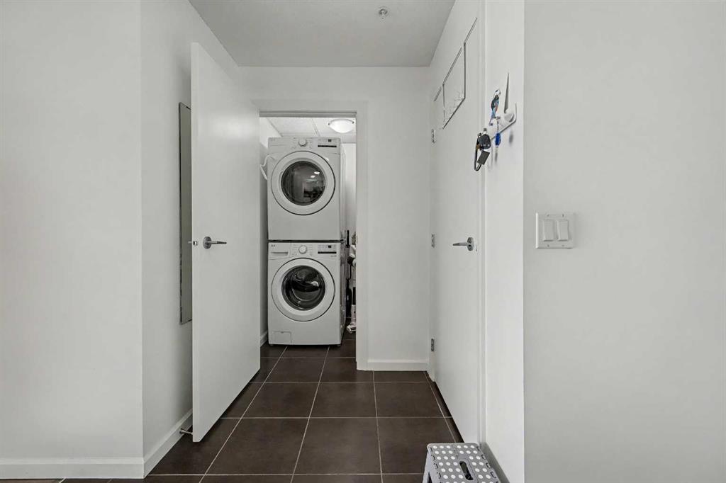 Urban Living at Its Best! Welcome to Vetro, where modern style meets unbeatable convenience. The open-concept layout features a modern kitchen with granite countertops, stainless steel appliances, a breakfast bar, and a striking tile backsplash. The bright living and dining space flows seamlessly, providing plenty of room to relax or entertain. The spacious bedroom includes a walk-through closet that leads into an ensuite bath, creating a private retreat. Note: Replaced washer/dryer (2023), flooring (2022), and repainted cabinets (2022). This unit comes with a titled underground stall and an assigned storage locker. The Vetro building is designed for elevated living, featuring a concierge service and night time security for ultimate peace of mind. Wellness enthusiasts will appreciate the expansive two-level fitness center, complete with a hot tub, steam showers, and an inviting games and social lounge with a pool table and cozy fireplace. Host movie nights in the private theatre room or relax in the outdoor courtyard. Convenience is at your doorstep with Shoppers Drug Mart and Canada Post located at the base of the building, and Sunterra Market and the BMO Centre just a short walk away. The Stampede Grounds, New Scotia Place Event Centre, Saddledome, LRT transit, and the vibrant shops and restaurants of 17th Avenue are all within easy reach. Lindsay Park and the MNP Community & Sports Centre are nearby, supporting an active, connected lifestyle. Whether you’re a young professional, savvy investor, empty nester, or first-time buyer seeking to own instead of rent, this condo delivers an exceptional blend of luxury, convenience, and an unbeatable location.