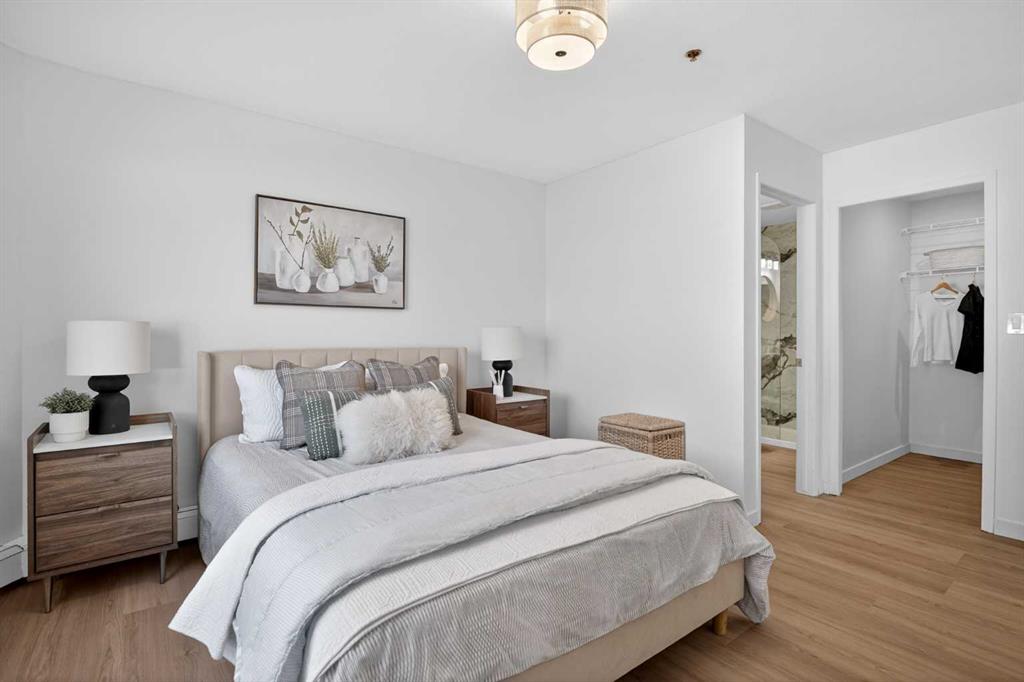 The OVERSIZED PRIMARY bedroom is more retreat than bedroom, with room to breathe, a WALK-IN CLOSET, and a beautifully RENOVATED ENSUITE with a stylish shower that gives boutique hotel energy. The second bedroom is bright and versatile — perfect for guests, a home office, or roommate-friendly living — with easy access to the equally RENOVATED MAIN BATH, also finished with a shower.