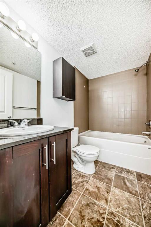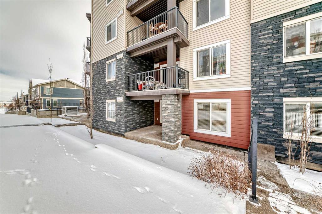 Ground floor cozy 2 bedroom plus Den and 2 baths is nestled in the family-friendly neighborhood of Kincora. Situated right in the midst of all kinds of amenities – transit routes, shopping centers, schools, recreational facilities, walk and bike paths. This is urban living at its best!. Freshly painted, spacious entrance you are ushered into the open floor concept of living room and dining area. To the left of the entrance is good size Den and the laundry room. Then there is the 4pce bathroom and a good size bedroom. To the right as you enter is good size kitchen with plenty of cabinets and counter top space, also the primary/master bedroom complete with walk in closet and 4pce ensuite. The porch off the living room has good view of the complex and neighborhood for those summer days hang out. Condo fees cover both heat and water, offering additional convenience. With easy access to Stoney Trail, Shaganappi Trail, and Beddington Trail, you’ll enjoy a hassle-free commute and excellent connectivity to everything you need.