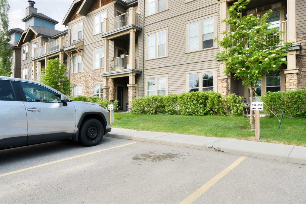 Bright, open-concept living defines this stylish one-bedroom, one-bath condo in Cochrane’s sought-after Sunset Ridge community. Designed for connection and comfort, this 579 sq. ft. ground-floor home welcomes you through a private entry straight onto your gas-line-ready patio — perfect for morning coffee or a cozy evening barbecue under the big Alberta sky. Inside, high ceilings and oversized windows fill the open living space with natural light, while the modern kitchen with breakfast bar and generous storage blends practicality with social charm. The spacious bedroom and walk-in closet bring everyday luxury, and in-suite laundry with extra storage keeps life simple. With titled parking, a fully equipped fitness centre, and pet-friendly approval, this home balances convenience and comfort. Condo fees include heat, gas, water, sewer, trash, and snow removal for truly low-maintenance living. Just steps from Cochrane’s scenic walking paths, parks, and mountain views, this is an easy place to call home. Book your private showing today. Let’s make YOUR dreams… Realty!