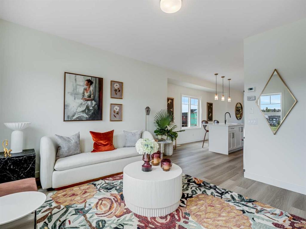 **Immediate Occupancy** Discover the charm and convenience of our Juniper Townhomes — a collection of stylish heritage-style row townhouses near the heart of our beautiful Environment Reserve Park! This Heritage model B (Corner unit) offers the perfect blend of comfort and function, ideal for families and professionals alike. With 3 bedrooms, 2.5 bathrooms, and a versatile main-floor den, this spacious home is designed for modern living. Upon entry, you’ll find a bright, ground-floor den/home office featuring a large window, closet, and a convenient powder room. Enjoy a professionally landscaped front yard, a single attached garage, and additional driveway parking. The open-concept main floor boasts 9′ ceilings and is filled with natural light, creating a warm and inviting space for everyday living or entertaining. The modern kitchen features quartz countertops, a breakfast bar, professional stainless steel appliances, and a chimney-style hood fan. Sliding doors open to a full-sized balcony — ideal for relaxing or dining outdoors. Upstairs, you’ll find two spacious bedrooms, including a primary suite with a double access closet and a private ensuite featuring a stand-up shower and sliding glass door. A second full 3-piece bathroom serves the additional bedroom, which can easily double as a home office. The upper level also includes a conveniently located washer and dryer, a linen closet, and thoughtful storage throughout. This home is located in vibrant Springbank Hill and offers easy access to Aspen Landing, Rundle College, Griffith Woods, Ambrose University, restaurants, and senior care facilities. * The GST is included in the price. * All Interior photos taken from our Show Home #2227-81St SW.