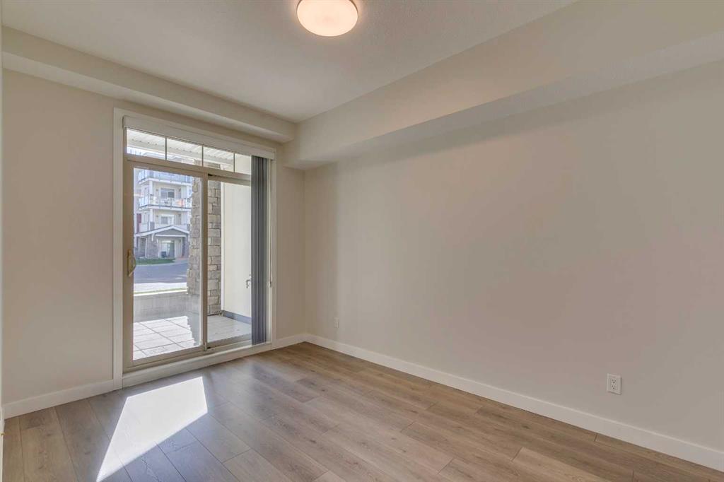 Tremendous opportunity and affordability for a first time buyer or investor…Welcome to Stonecroft at Auburn Bay—where comfort meets convenience in one of Calgary’s most desirable lake communities. This recently modernized and updated ground-floor, one-bedroom condo offers a bright and open layout with 9-foot ceilings and durable laminate flooring throughout. The kitchen features sleek quartz countertops, modern stainless steel appliances including a brand-new, never-used stove, and seamless flow into the living room with electric fireplace, where large windows and a patio door fill the space with natural light. Step outside to your oversized patio, offering the rare bonus of private outdoor access right from your home. The bedroom includes sliding doors to the patio, a walkthrough closet with built-in shelving, and direct access to the full bathroom for an ensuite experience. You’ll love the thoughtful touches like in-floor radiant heat, an in-suite washer and dryer (less than a year old), and the convenience of a separate den that’s perfect for a home office or extra storage. This unit also includes a heated, secure underground parking stall and an assigned storage locker for added peace of mind.