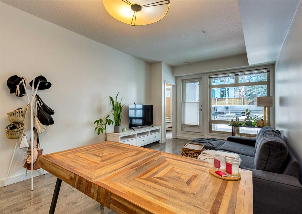 Located in one of Calgary’s most walkable and vibrant inner-city communities, this ground-level, south-facing Mission condo offers an exceptional combination of modern design, thoughtful layout, and an unbeatable lifestyle. Just steps from the Elbow River pathways, MNP Sport Centre, restaurants, cafés, fitness studios, and everyday amenities, this home truly puts the best of Mission at your doorstep. One of the standout features of this home is its ground-level location, providing a huge private patio that opens directly onto the secured, landscaped courtyard. The fully fenced courtyard includes raised garden beds and is accessed through two locking gates, making it ideal for pet owners and anyone who values seamless indoor-outdoor living. With direct gated access from the patio, coming and going is effortless — perfect for dog owners, entertaining, or enjoying green space without leaving the building. The patio also includes a natural gas BBQ. Inside, 9’ ceilings and a well-designed open layout create a bright and spacious feel. The U-shaped kitchen is finished with quartz countertops, LED accent lighting, and a full suite of appliances including a four-burner gas cooktop, built-in oven, microwave hood fan, two-drawer dishwasher, and garburator. Quartz countertops continue throughout the bathrooms, complemented by motion-sensor LED lighting and modern finishes. The primary bedroom comfortably accommodates a king-size bed and features a walk-through closet leading to a well-appointed ensuite with space-saving pocket doors and excellent storage. A spacious den, positioned away from the primary bedroom, offers flexibility as a home office or second bedroom. In-suite laundry with washer and dryer completes the interior. Additional highlights include a heated underground parking stall with an assigned storage unit, secure bike storage, a car wash bay, and free underground visitor parking. The building is pet-friendly and exceptionally well suited for dog owners. Mission is tough to beat. Whether you value walking to grocery stores, natural food markets, boutique shops, tennis courts, the public library, or some of the city’s best dining and entertainment, this location delivers true inner-city convenience. Modern comfort, rare outdoor space, and an exceptional location!
