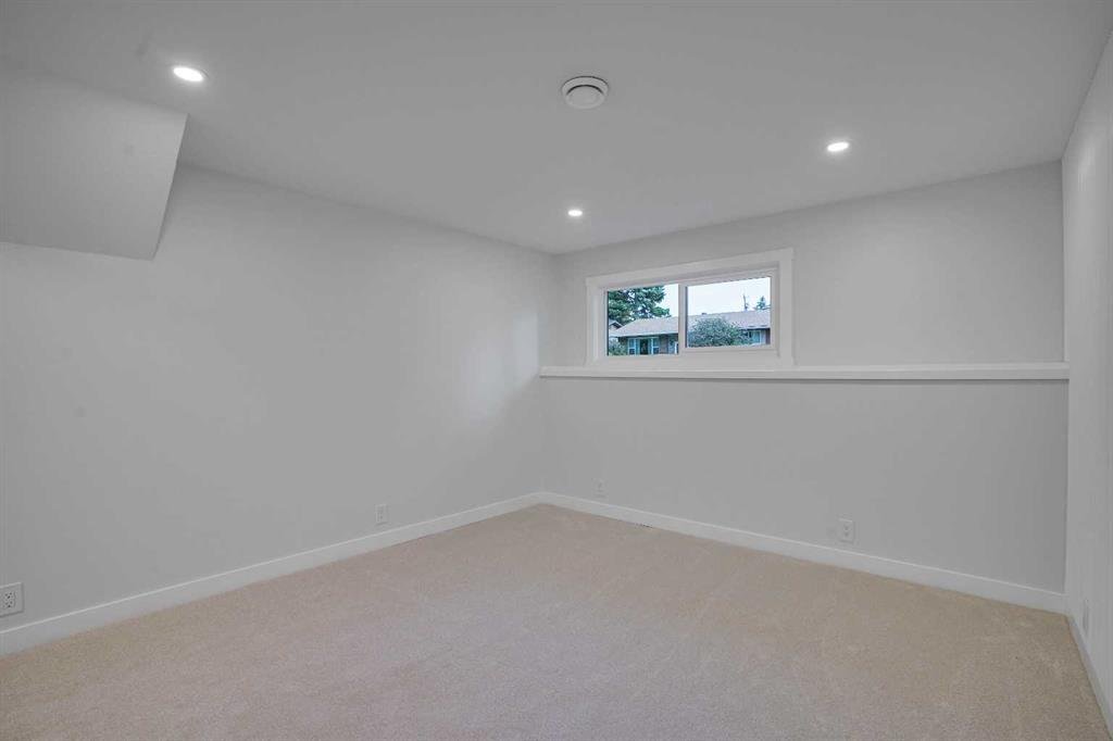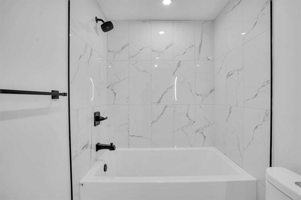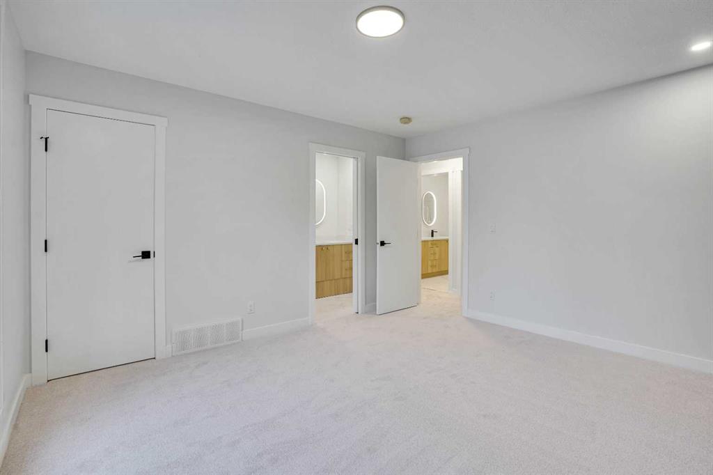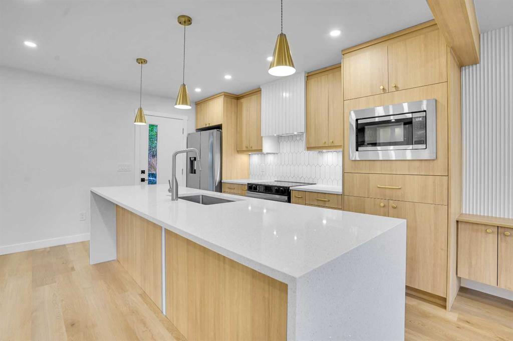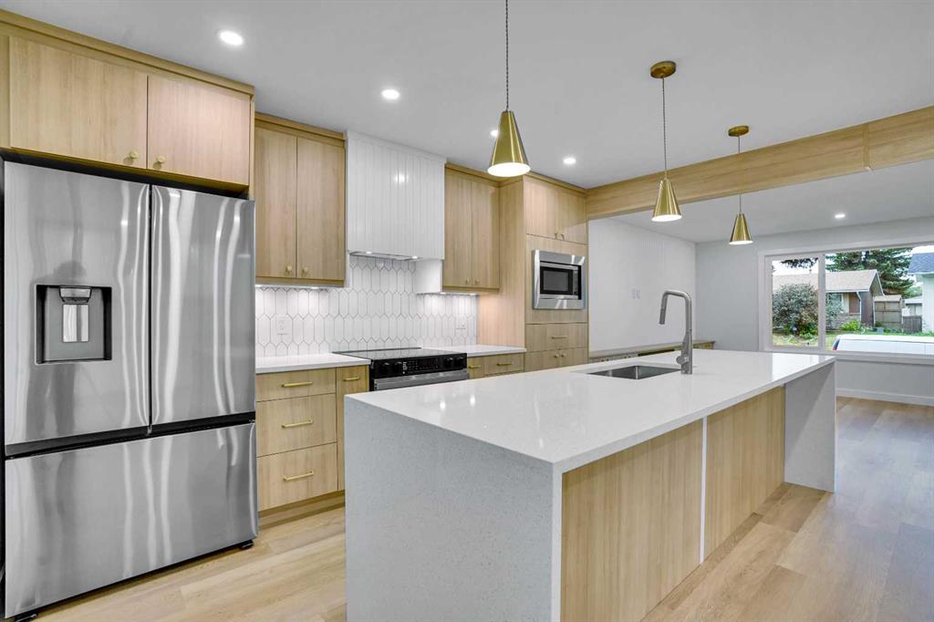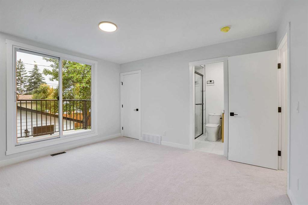 The main floor features an open concept layout with a chef-inspired kitchen complete with a striking waterfall island, brand new appliances, and custom cabinetry. The dining and living areas are bright and inviting, anchored by a sleek electric fireplace, while a custom bar on the main level makes this space perfect for entertaining. Each of the three bathrooms has been completely redesigned with high-end finishes including the spa-like ensuite that provides a private retreat for the homeowner.