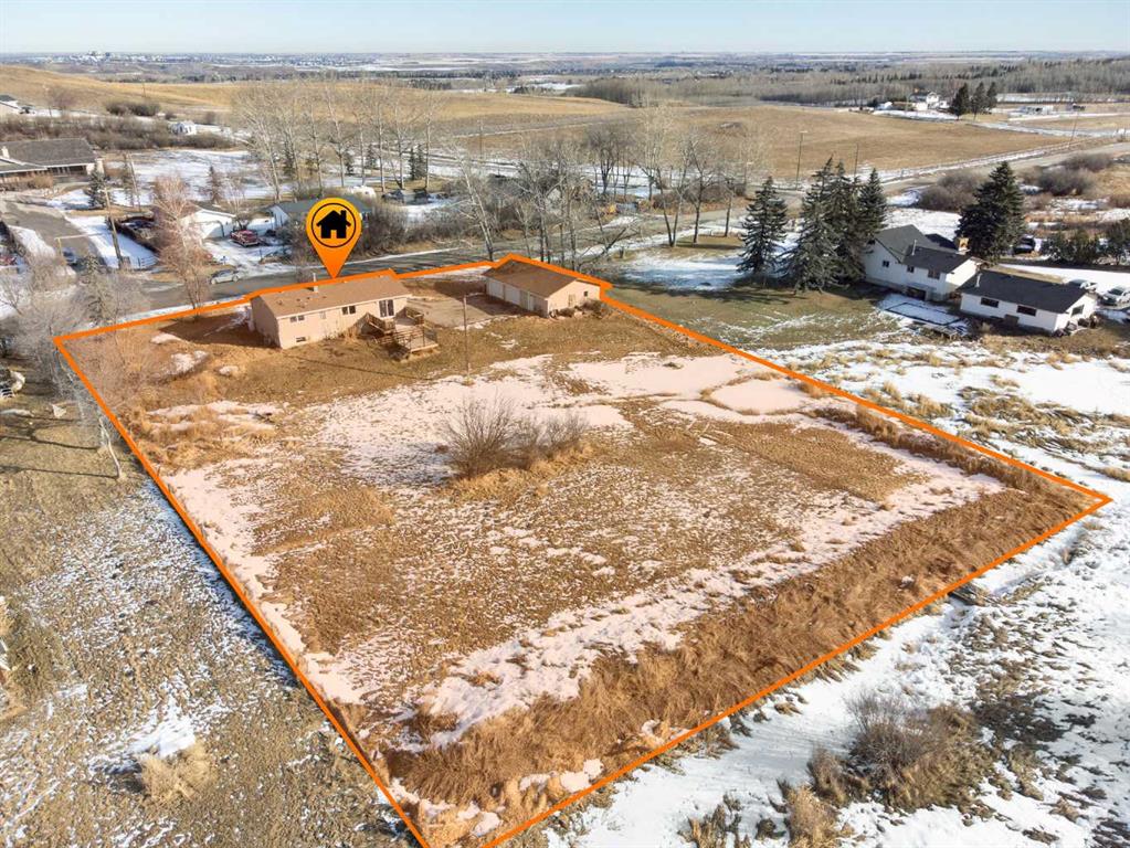 Immaculately revamped, move-in ready bungalow on a private 1-acre acreage in the heart of De Winton in the Hamlet . A rare rural property with city access, offering true country living with quick access to Calgary (8 min) and Okotoks (10 min). Enjoy quiet country nights, clear skies, scenic countryside views, a historic view of the original Macleod Trail, and local wildlife, all while being steps from the community centre, playground, and local amenities. Minutes to Millarville Farmers Market, Saskatoon Berry Farm, and Kayben Farms. The land also offers potential for future business, commercial, or mixed-use opportunities, subject to Foothills County verification and re-designation approval. The bright, open-concept main floor features a skylight with a baby cathedral ceiling skylight, a huge length front porch, and an open kitchen and dining layout ideal for family living and entertaining. The updated kitchen includes a new dishwasher and induction stove. A warm family room with a cozy corner fireplace opens through new patio doors to an updated, spacious double deck overlooking a sunny south-facing yard, creating seamless indoor-outdoor living and great entertaining space. New air conditioning adds year-round comfort. Two generous bedrooms on the main floor plus a flexible basement room currently used as a game lounge and den. The primary suite comfortably fits a California King and boasts a newly renovated, bright 5-piece ensuite with oversized tub, plus a fully updated 3-piece main bath. The second bedroom easily accommodates a queen and works perfectly as a home office, guest room, or flex space. The unfinished basement includes a newly created game lounge, a large egress-style window, and is an easy conversion to an additional bedroom, media room, or recreation space.