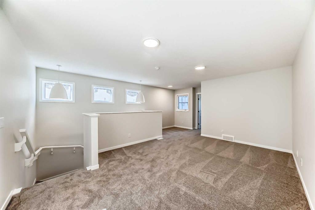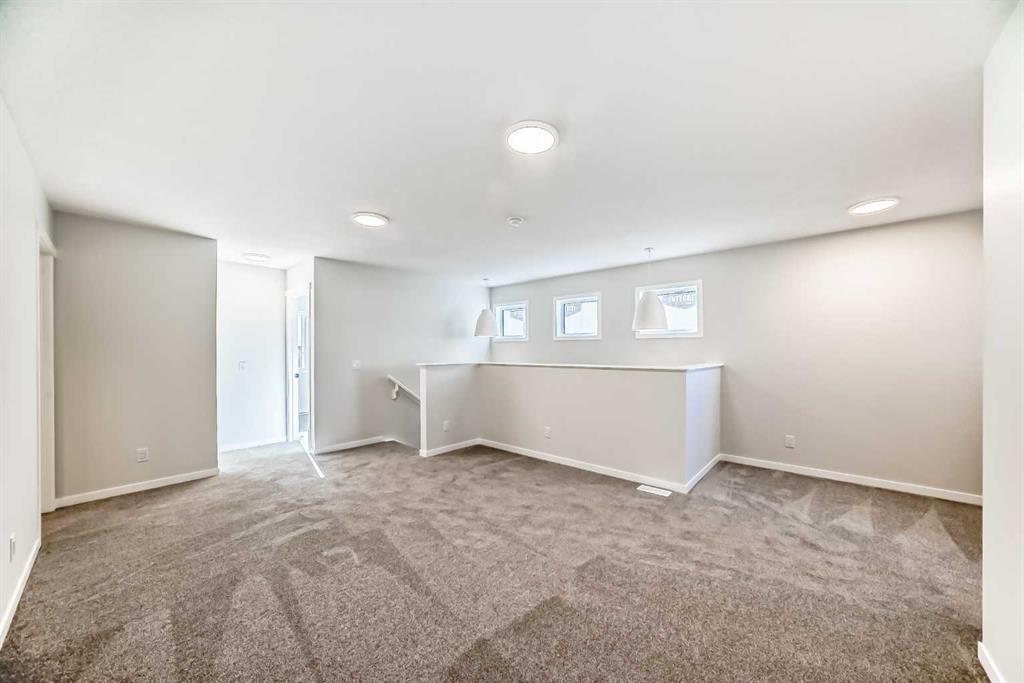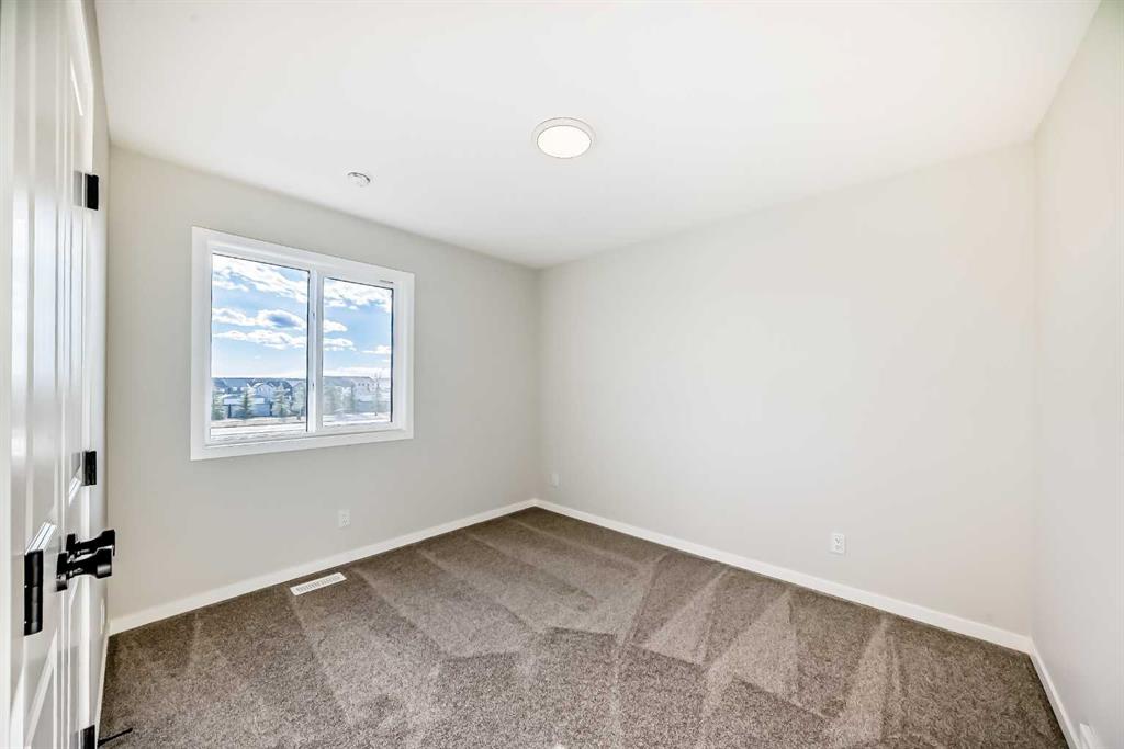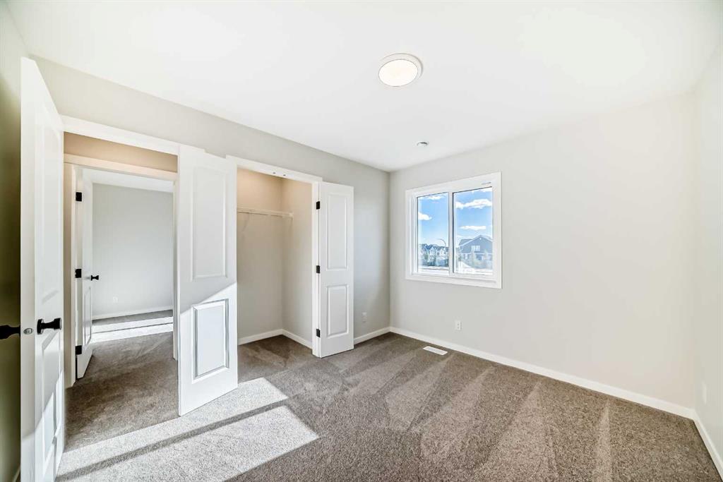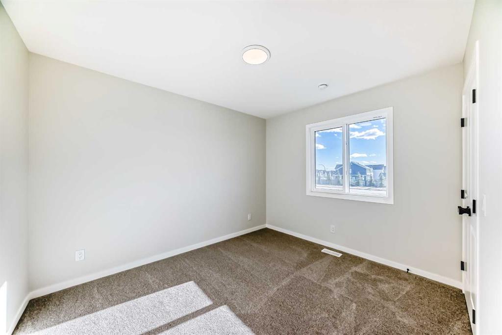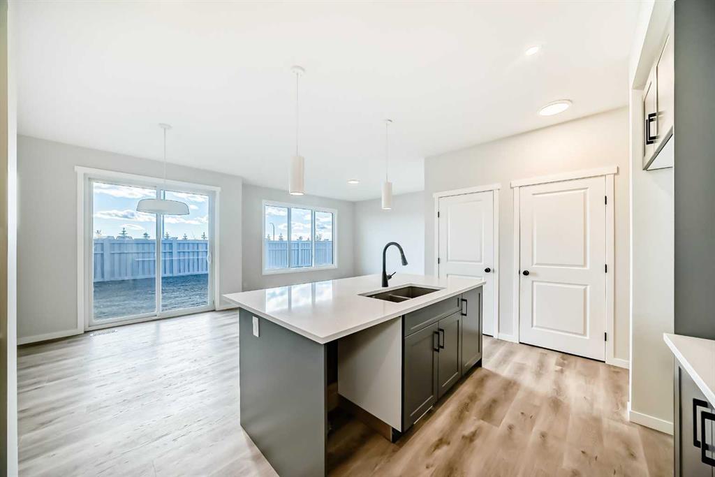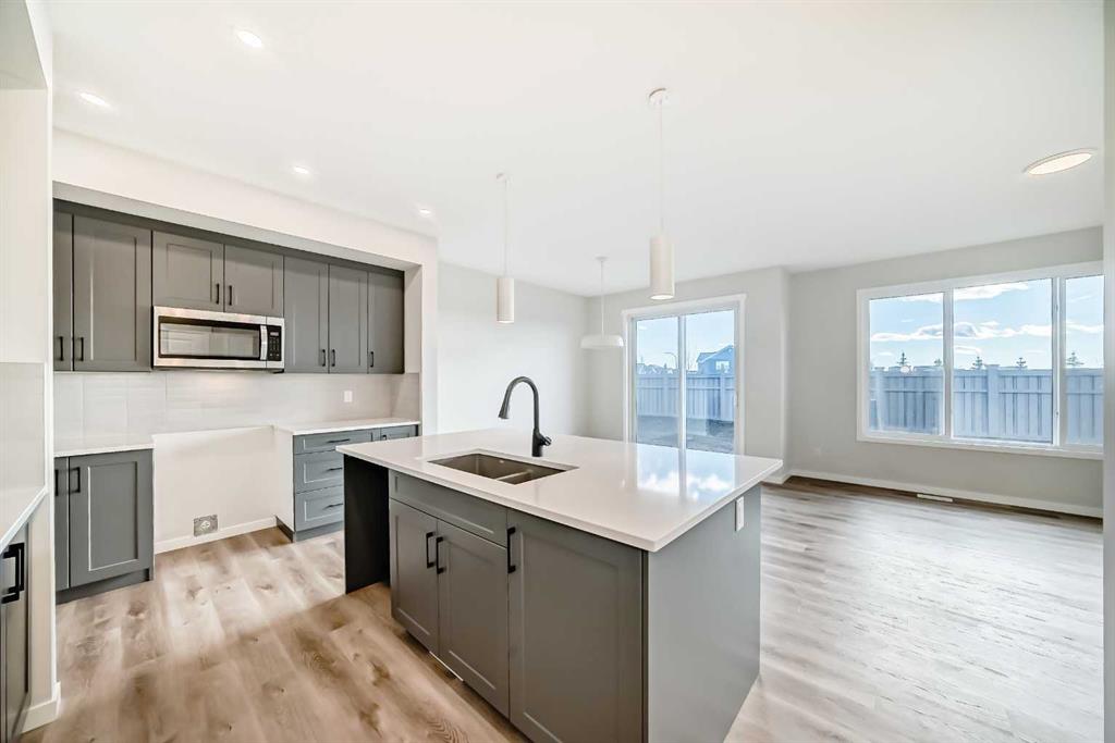 Welcome to the Kalara—where modern design, flexible living, and everyday functionality come together in one beautifully planned home. A bright, open-concept main floor connects the kitchen, dining, and lifestyle areas, all oriented to a desirable south-facing backyard that fills the space with natural light. The kitchen is a true standout with modern grey cabinetry carried to the bulkhead, black hardware, white quartz counters, a stacked subway tile backsplash, and stainless steel appliances. Thoughtful touches—like pot lighting and clever added storage under the island’s bar seating—make this space as practical as it is stylish. A versatile main-floor flex room adapts easily to a home office, study, or playroom, while upstairs a central loft offers an ideal media zone or reading nook. The upper floor is headlined by a smartly designed laundry room that connects directly to the primary ensuite—streamlining daily routines—alongside a serene primary retreat and two additional bedrooms for family or guests. Designed with tomorrow in mind, the home features a 9′ foundation and a secondary side entrance, creating excellent potential for future basement development—think guest or in-law space, or a suite configuration (subject to city/municipality approval and permitting). With its balanced layout, quality finishes, and room to grow, the Kalara nails comfort, function, and value. Set in Mahogany—one of Calgary’s most sought-after lake communities—you’ll enjoy a 63-acre freshwater lake, two private beaches, and an extensive network of parks, pathways, and wetlands. Everyday essentials are close at hand with plentiful nearby shops and services, plus quick access to schools and the South Health Campus. It’s an active, four-season lifestyle wrapped in a vibrant community—an easy place to love calling home.